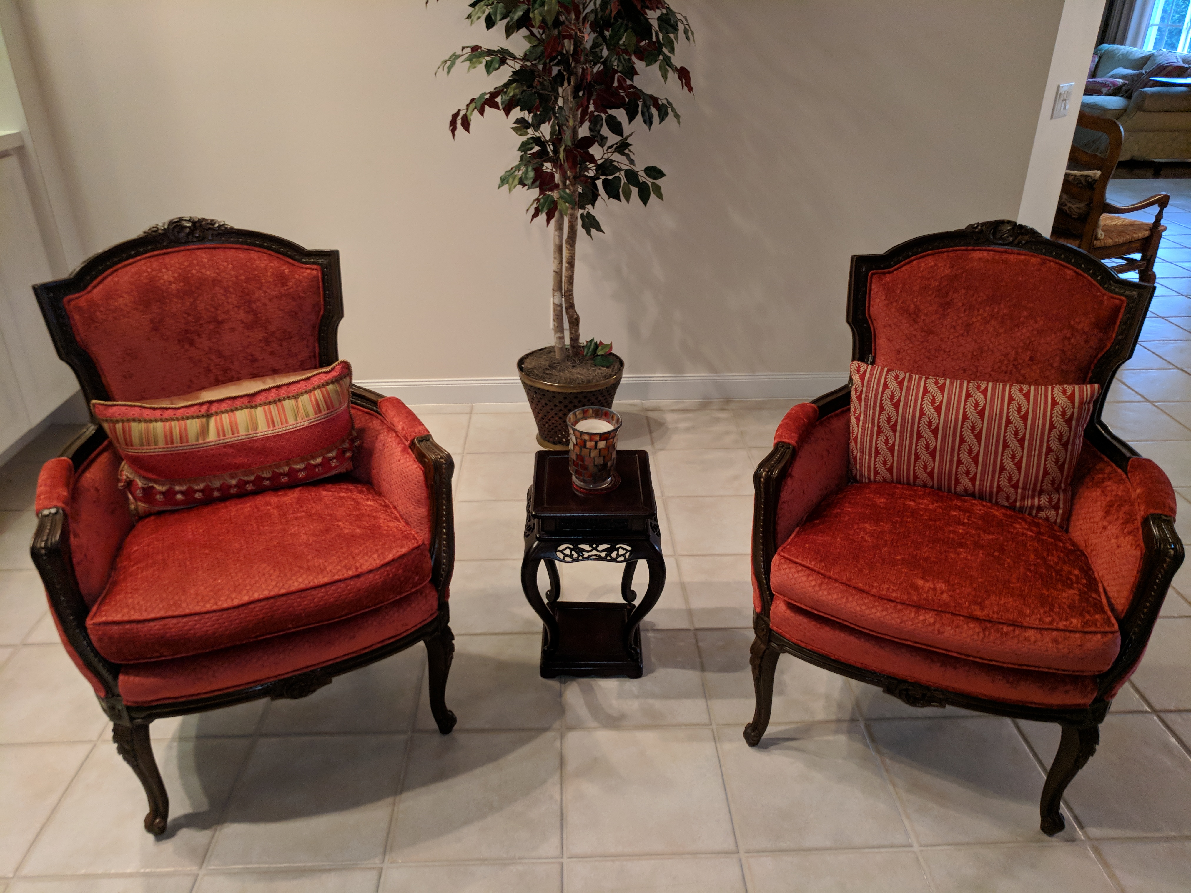 My Grandmother had these then my Mom. Mom had them refurbished and uphoulstered (paid $600 per char for that) but that was to fit her decor and they were her Mom's. I do not have room for them so looking to get a fair value to find a new home.