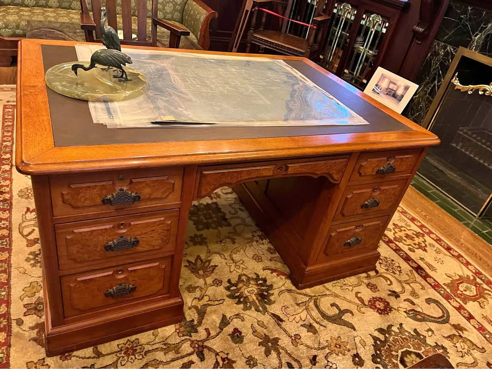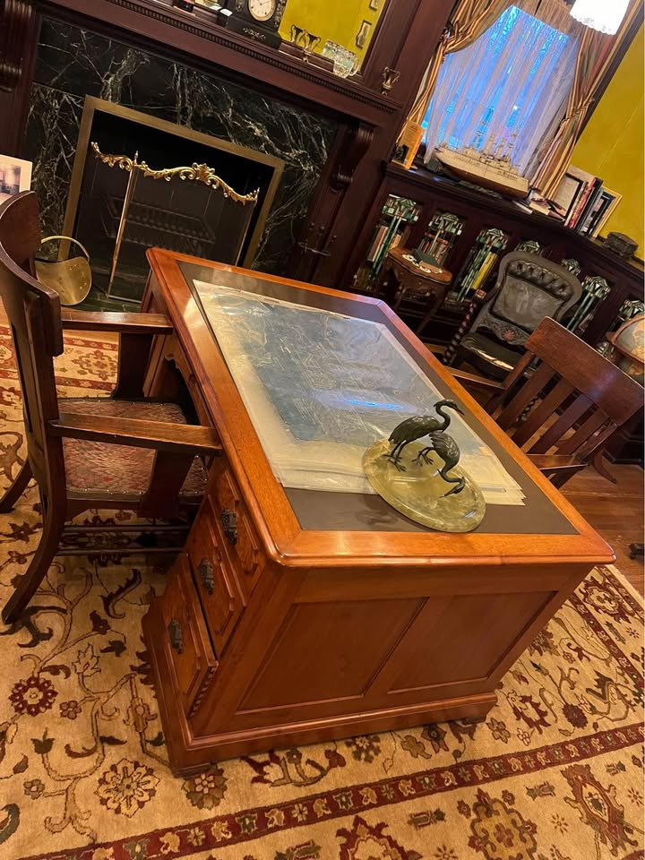 Old partner's desk from the Al Ringling mansion in Baraboo, Wisconsin. Blueprints for the mansion were stored in the desk. Not sure if it was Al Ringling's desk.