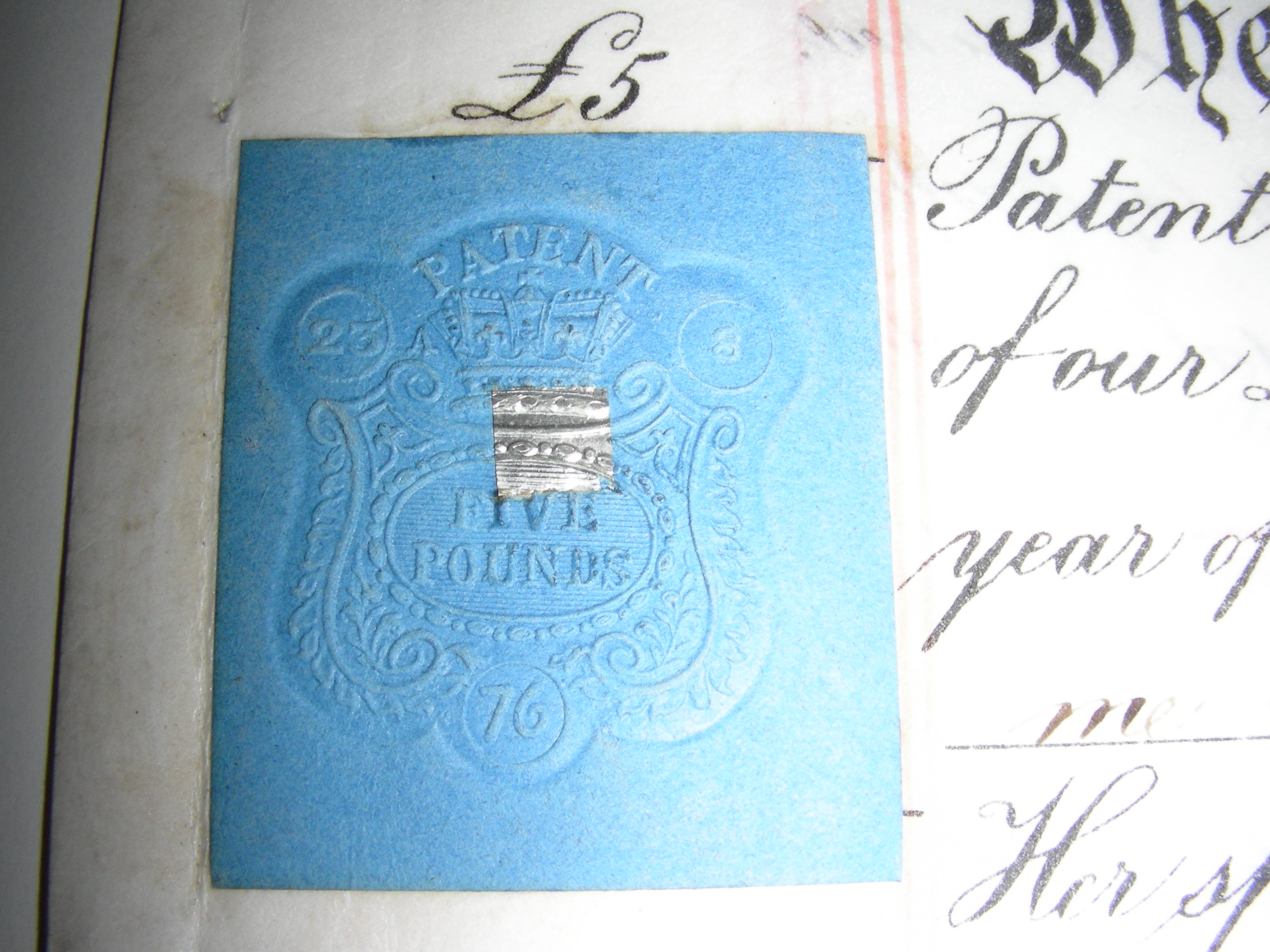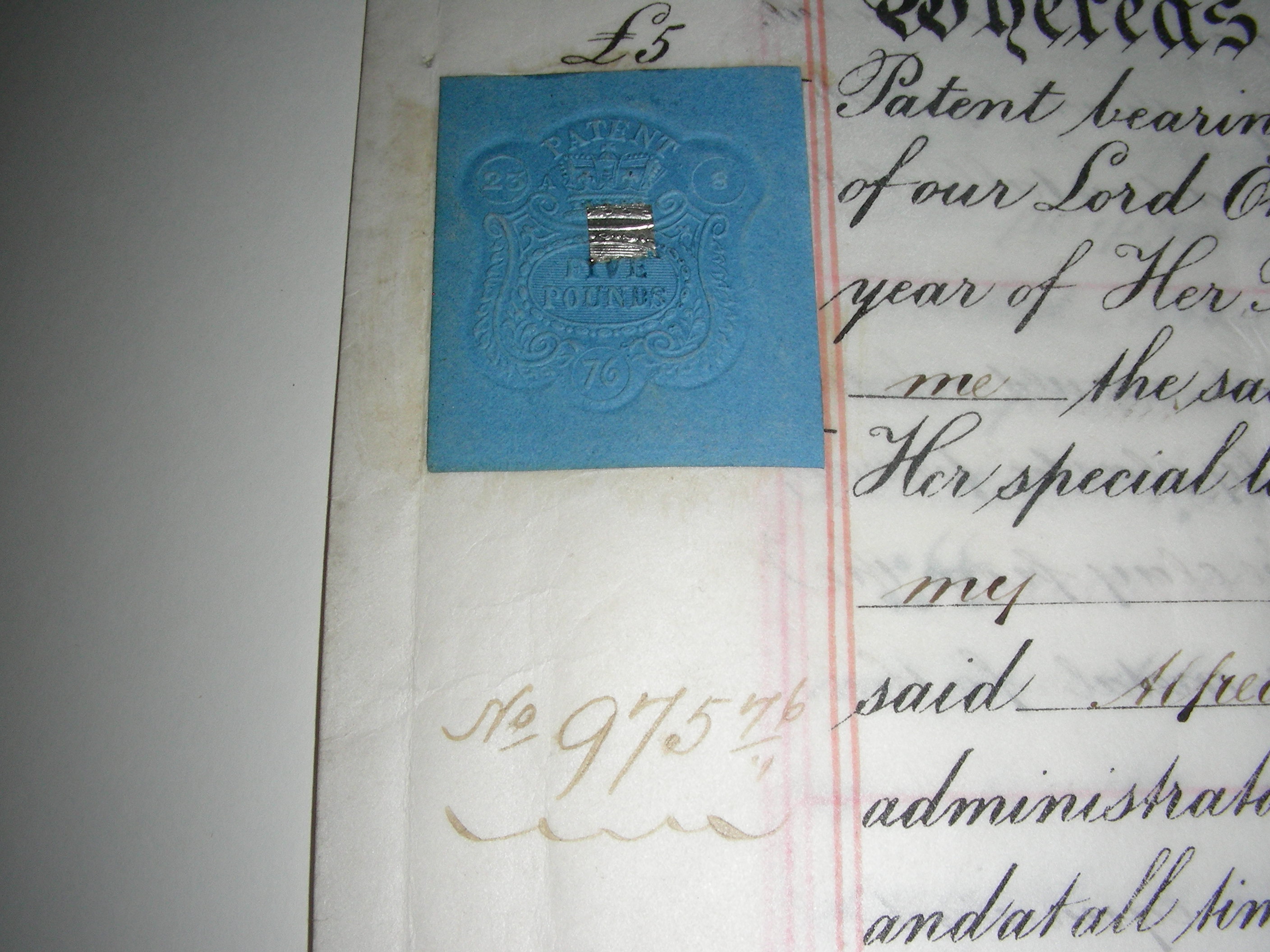 Patent certificate no. 975 For a brickmakiing machine.