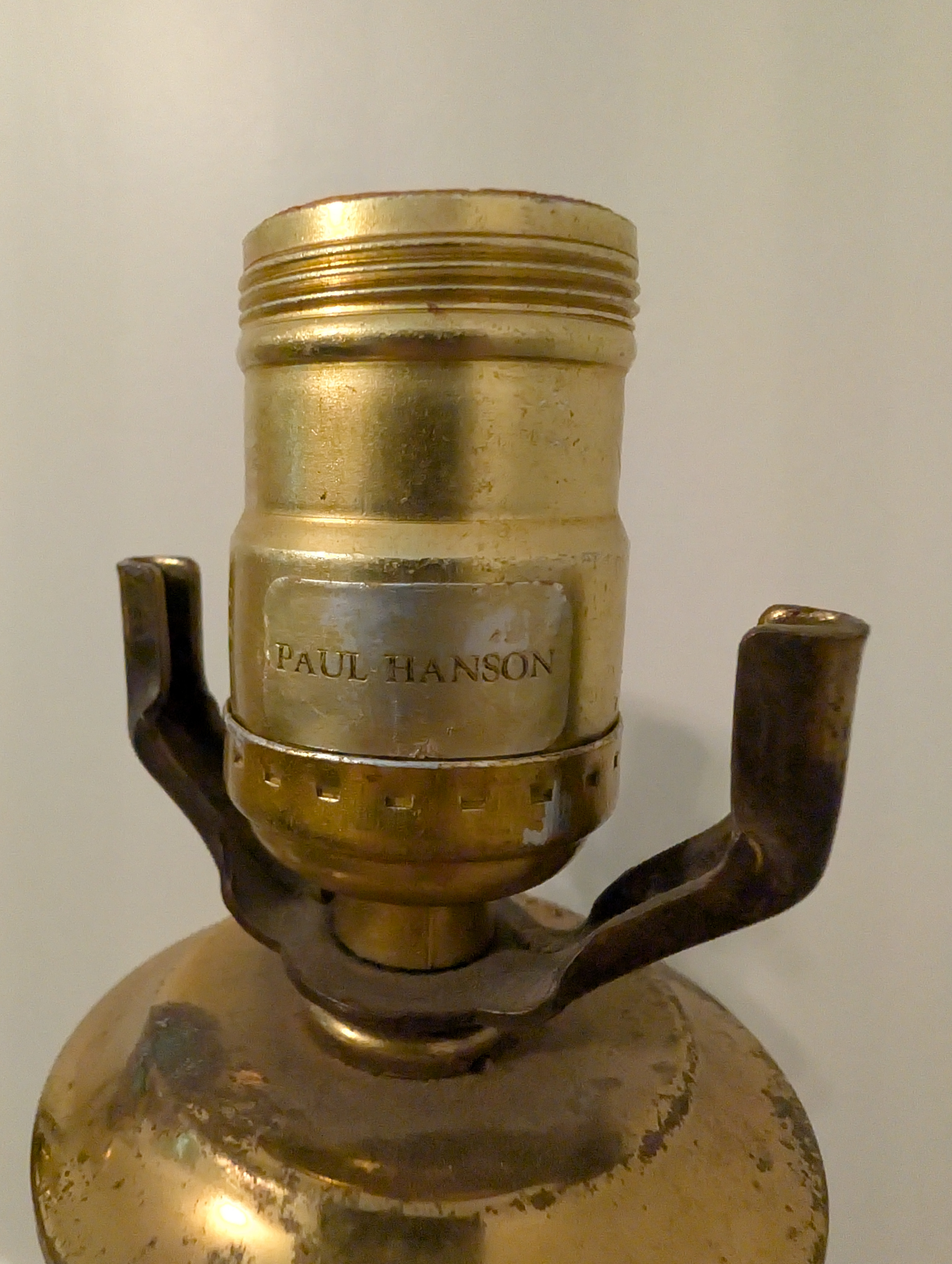 These are authentic Paul Hanson table lamps, identified by the embossed “PAUL HANSON” socket and overall design. Known for elegant, high-quality lighting from the 1940s–1970s, the Paul Hanson company produced lamps for high-end department stores and interior decorators.