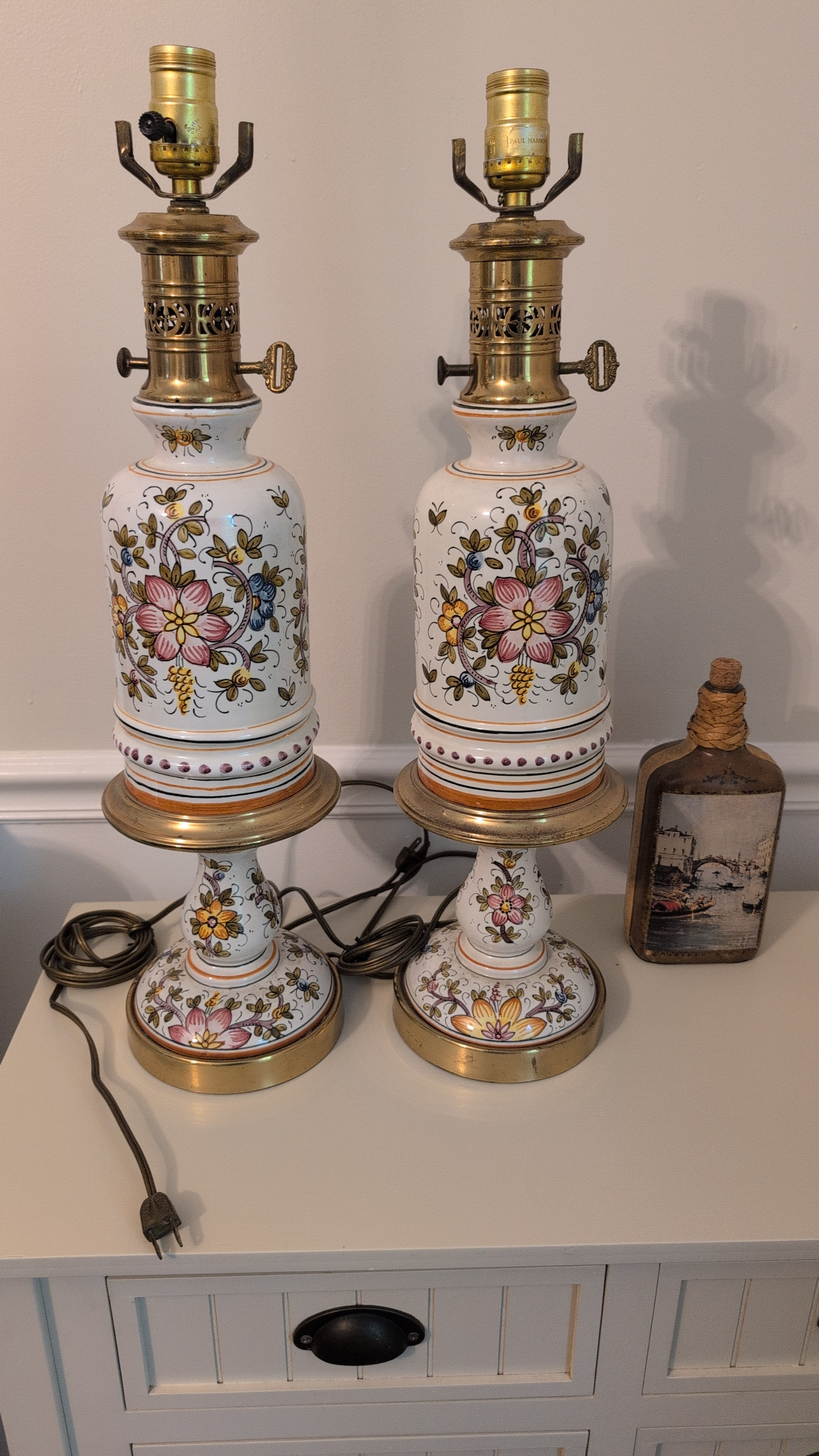 Medium: Hand-painted ceramic/porcelain bases with brass fittings