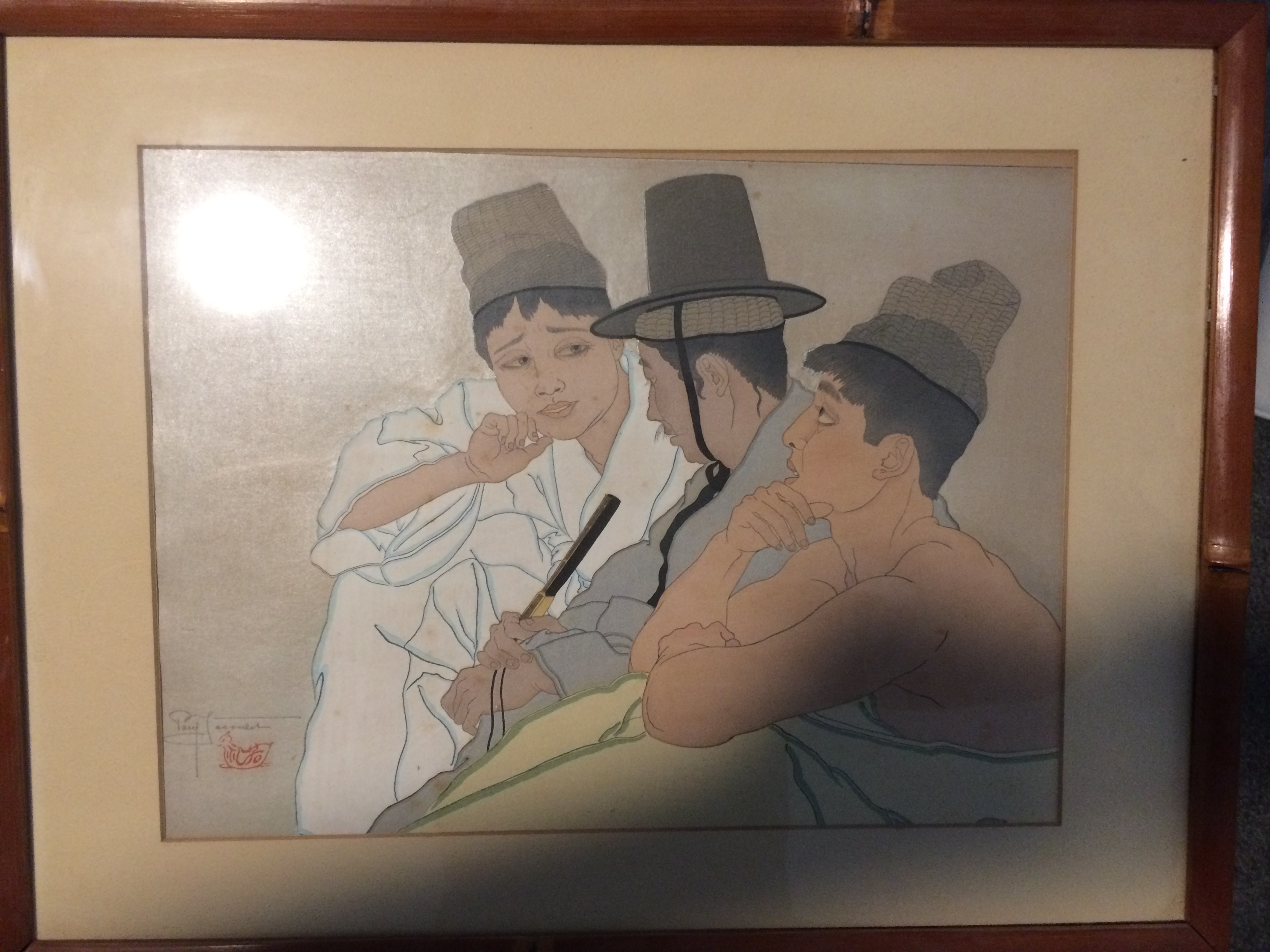 Two   Pieces of artwork that my grandfather picked up in Tokyo Japan sometime in the 1950s. Have the signatures of joculet on both pieces. Can Not determine the titles of the pieces or the authenticity. Rather very good condition as it been encased in glass the entire time. Frames are still the same from the 1950s made of bamboo.