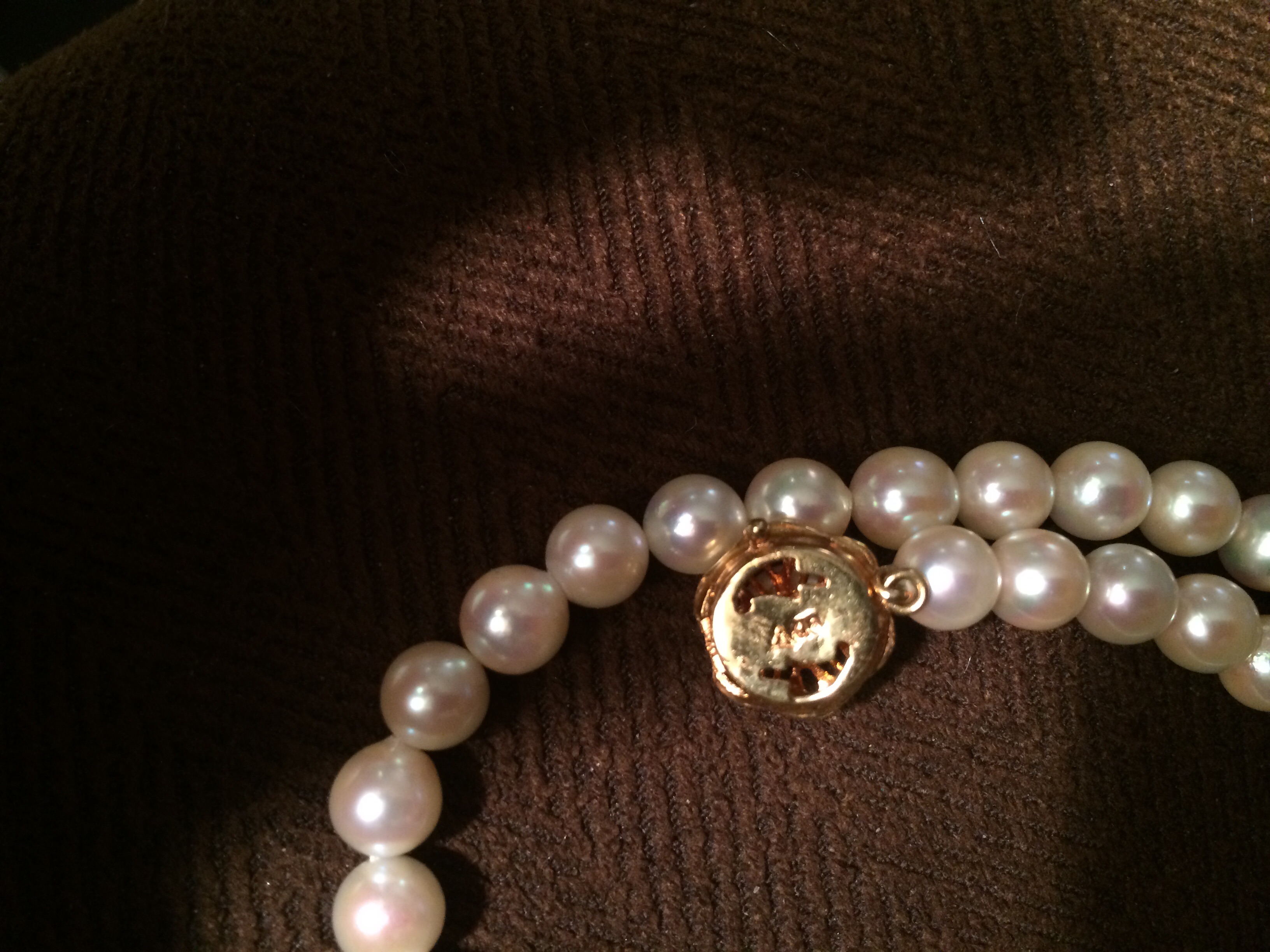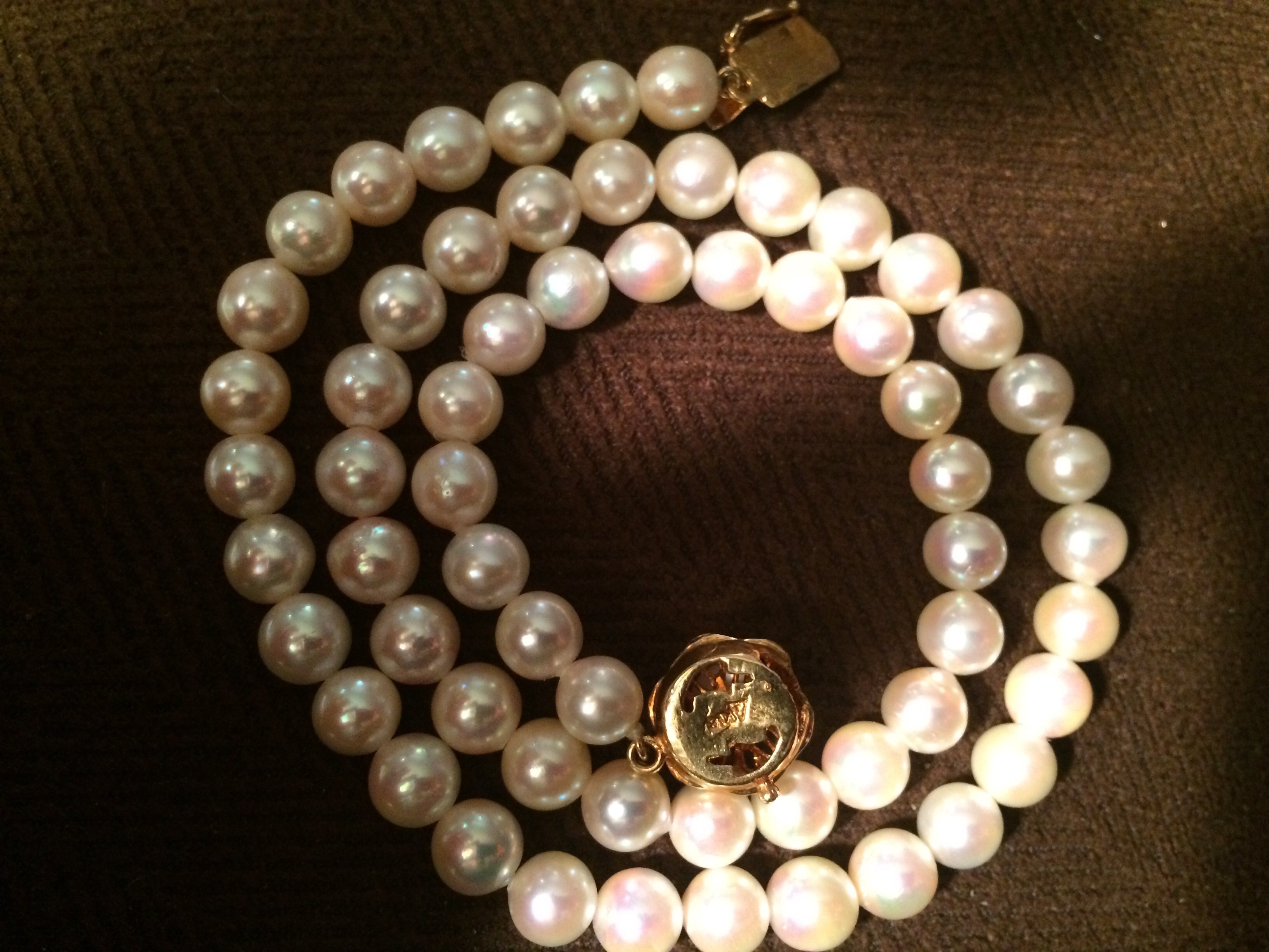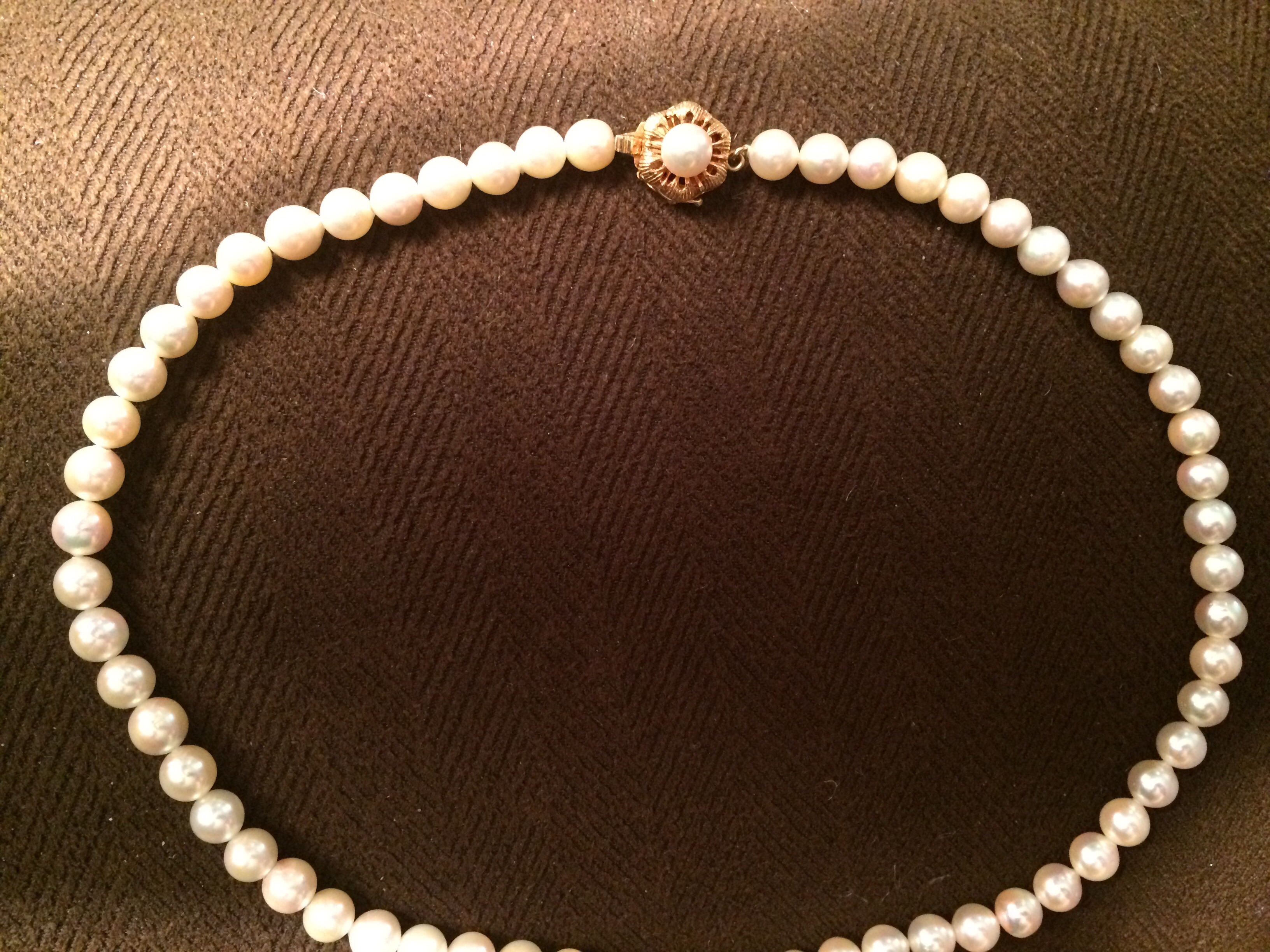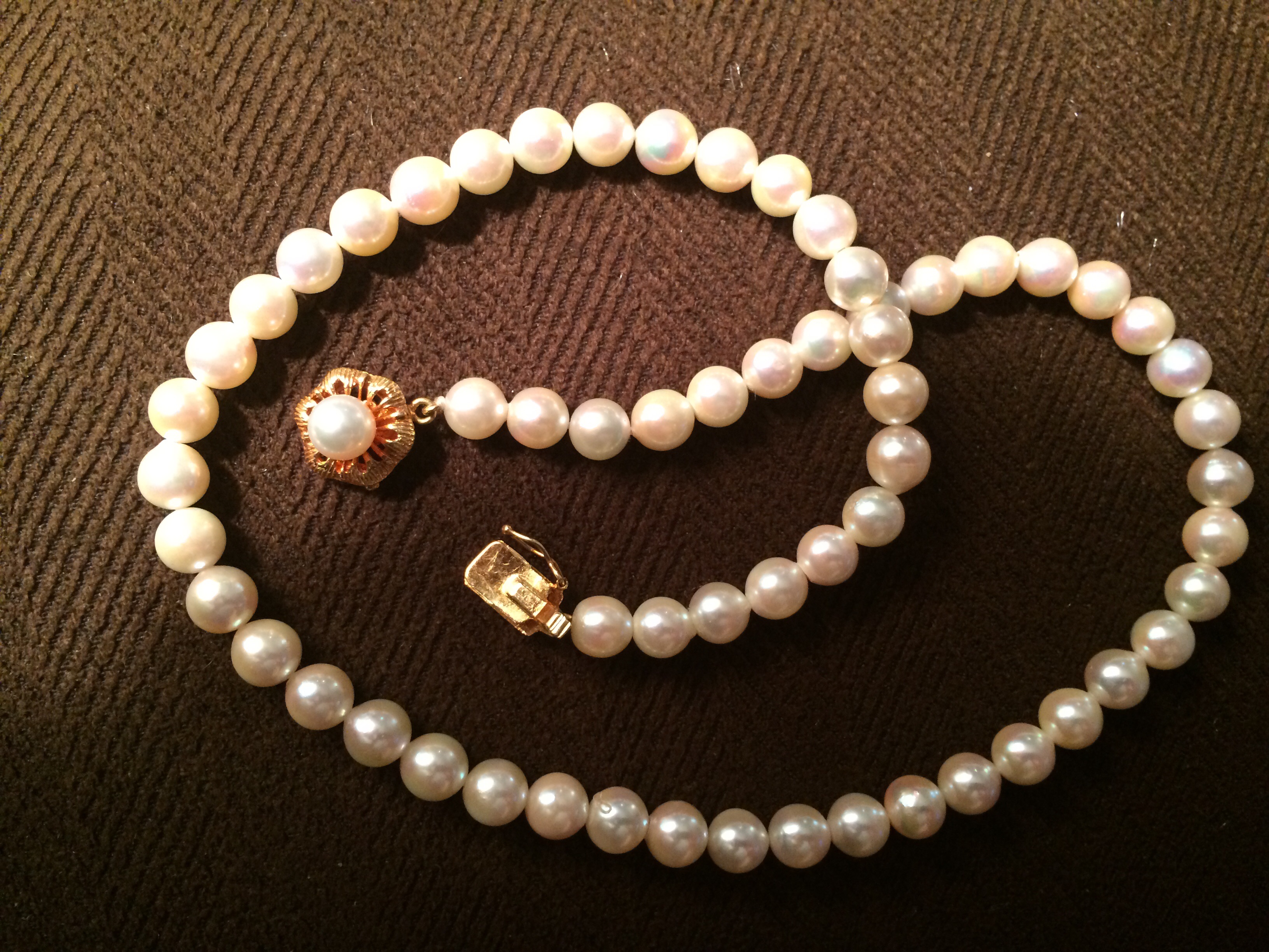 19 inchs long pearls with 18 k gold and ring with one big pearl and diamons in 18 k gold
