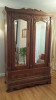 Multi tone woods, 2 top drawers, 2 wardrobe doors(locking), one side wardrobe, one side 3 drawers, 4 legs with rollers, in pretty nice condition.