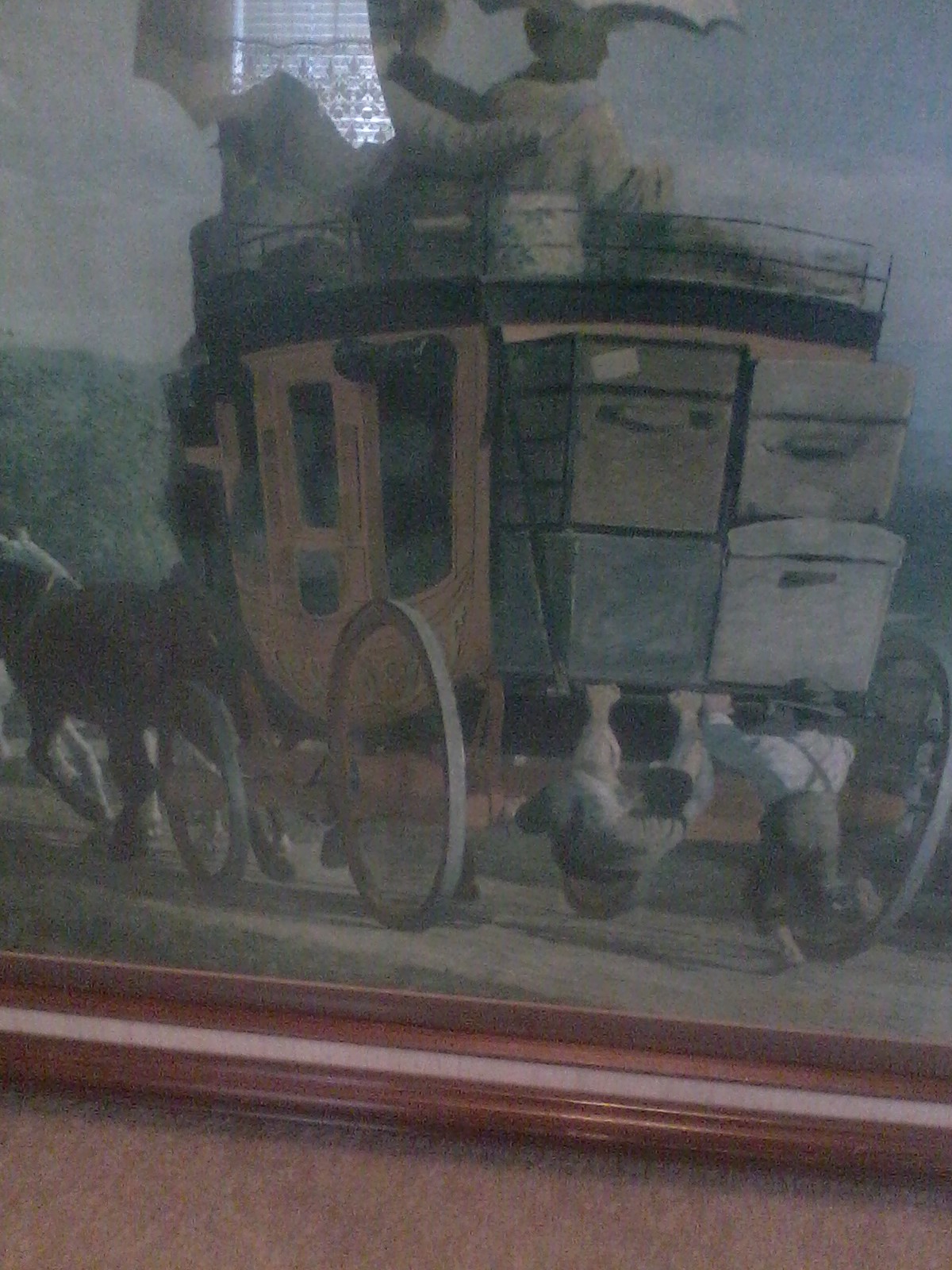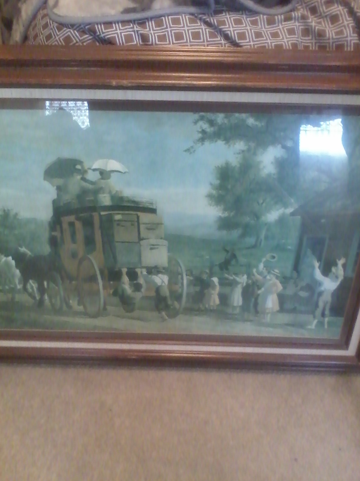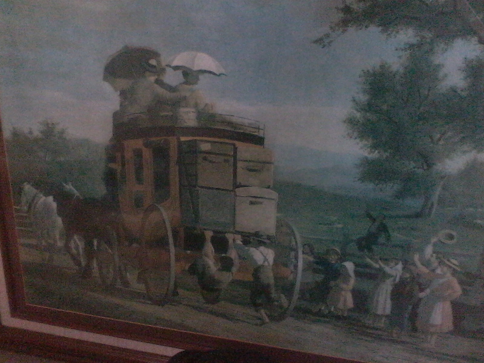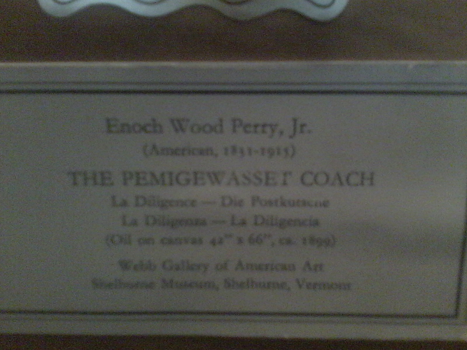 This is a print of "The Pemigewasset Coach" by Enoch Wood Perry Jr. The original was given as a wedding gift by the artist. This piece has hung on the walls of the webb gallery in Vermont. It immediately had caught my eye and I hope I can find a new home for it.
