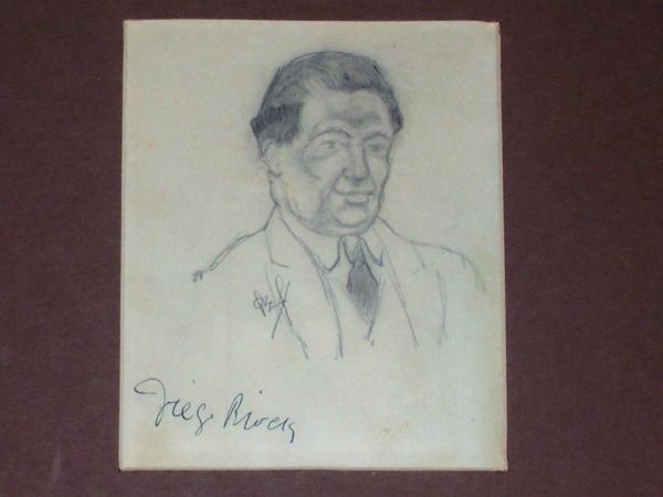 autographed by diego rivera sketch done in 1934 at the Art Students league by philip e johnson