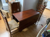Body of side board is constructed of Pine & Poplar wood with dovetail construction. The splashboard around the top is made of Walnut. There are two dovetailed drawers and two doors opening onto a 2 shelf interior. The doors, drawers, and splashboard are handpainted by the Penna Dutch historian and artist Clyde Stacks.