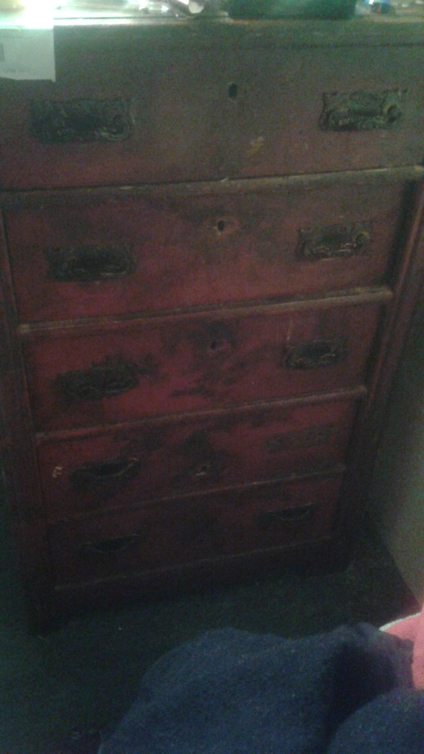 Dresser passed down Germanic style, sturdy. Needs stripping refurbishing some replacement of drawer bottoms. Dovetail interlocking.