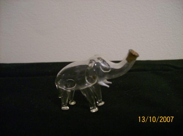 Elephant still has the cork and has white tusks. Most of the gold is worn off.