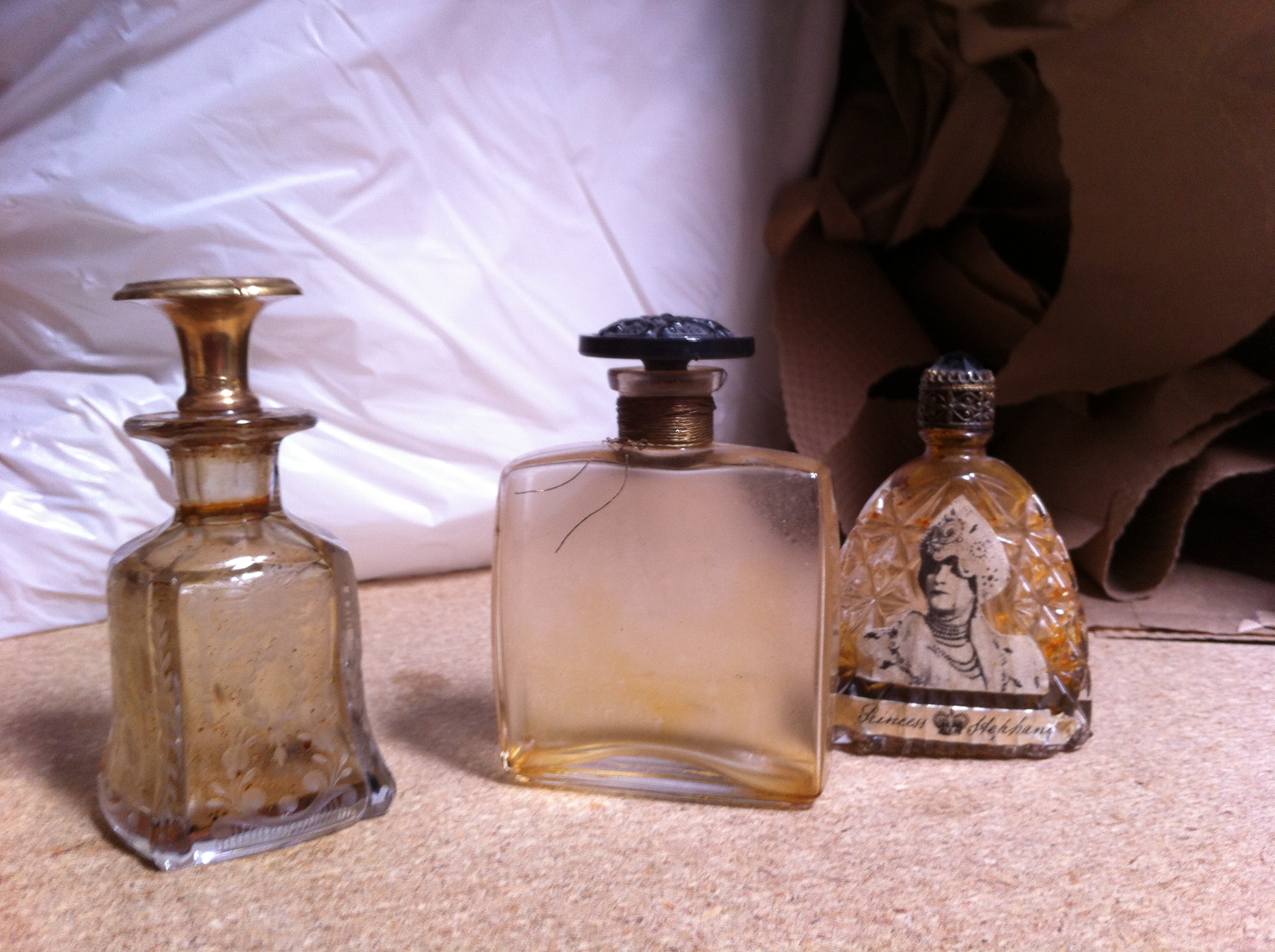 Three very old perfume bottles