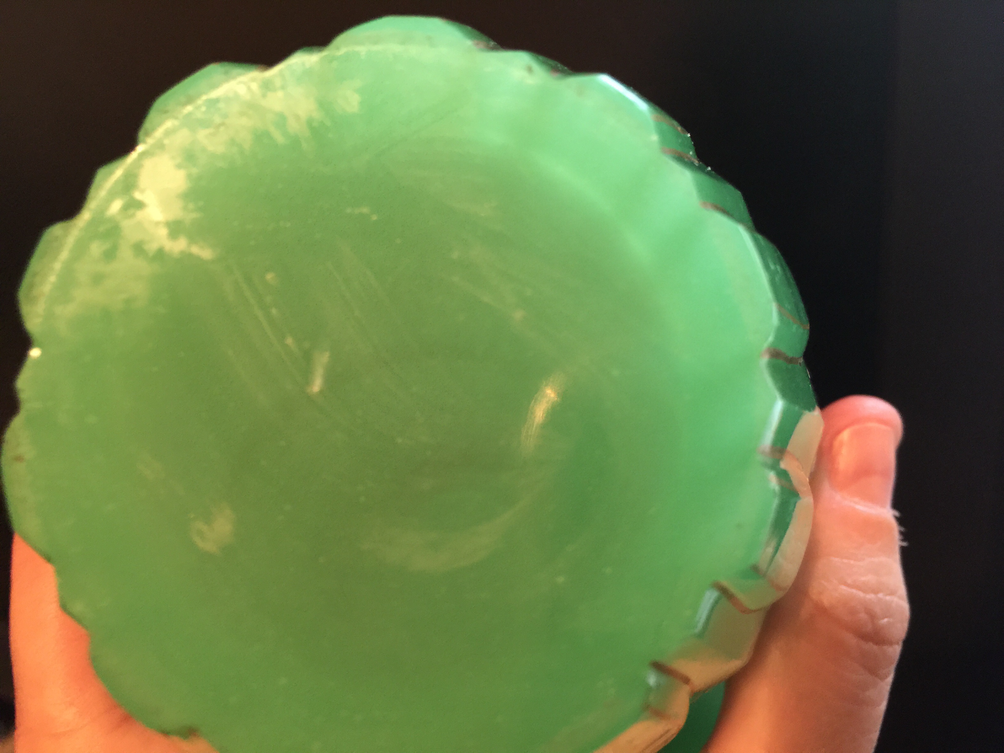 30 years ago. When my dad passed she told me to hold onto it as it was very valuable. She had brought it for him from Persia. It is a heavy green glass and appears hand painted. There are no markings on the bottom. No cracks or chips. There appears to be a hole inside lid that is possibly an air hole. If you could give me any background or an idea of it's worth that would be wonderful. Thank you.