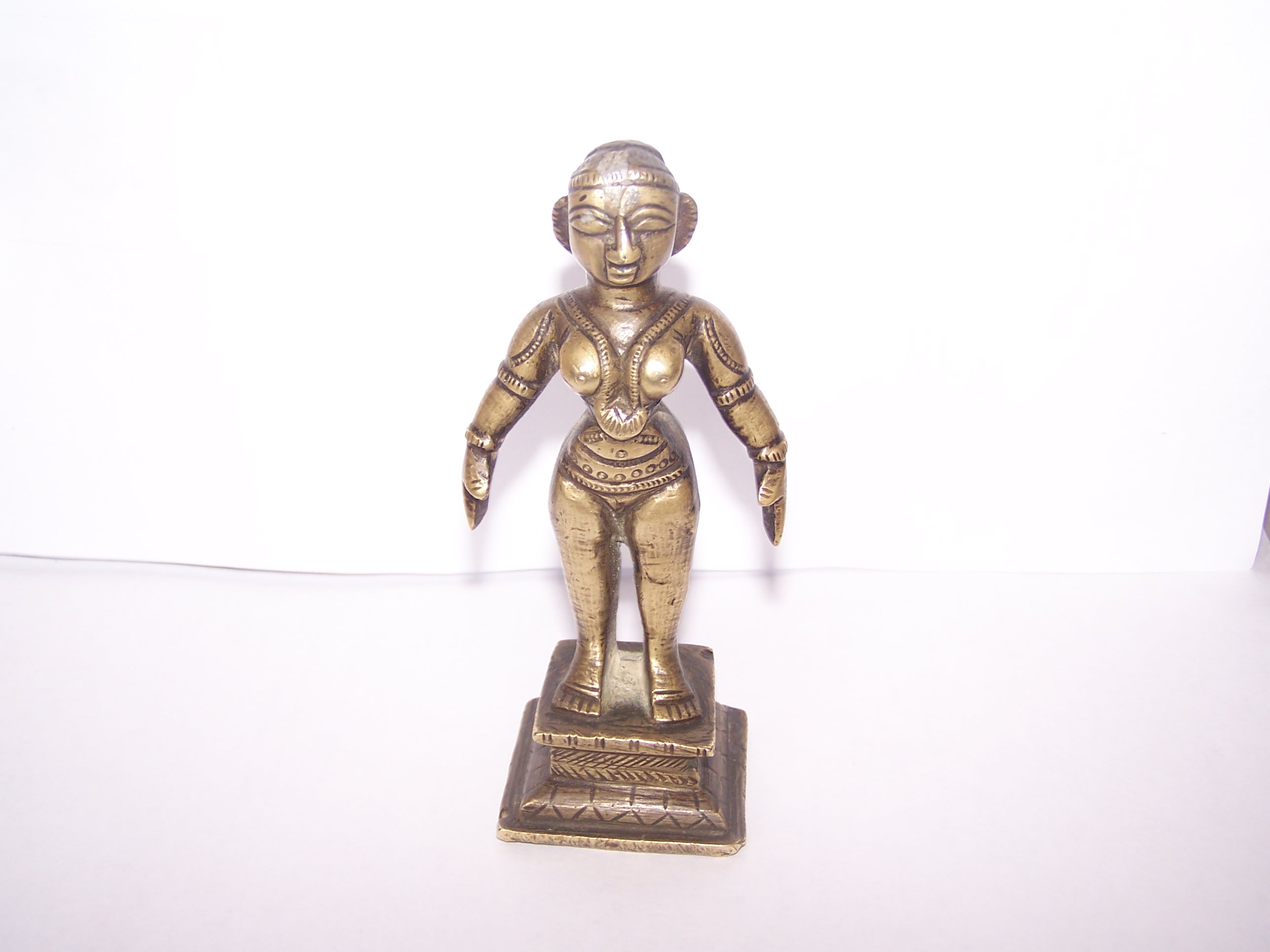 This very unique and very old Satuette is obviously hand made metal and dipicts some osrt of Goddess. Could be asian, peruvian, aztec, or other ancient civilization.