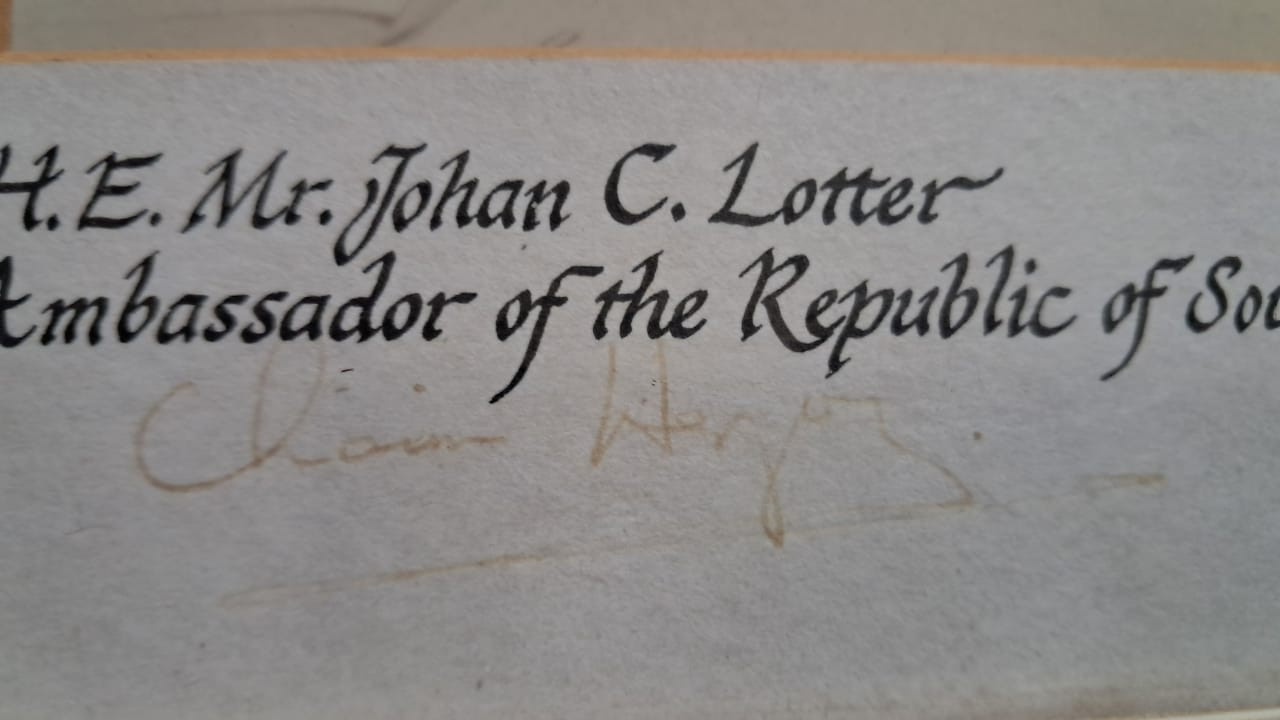 Description My father was ambassador for South Africa to Israel. On his travels, a photograph personally signed by President Herzog was given to my father and a note from him.