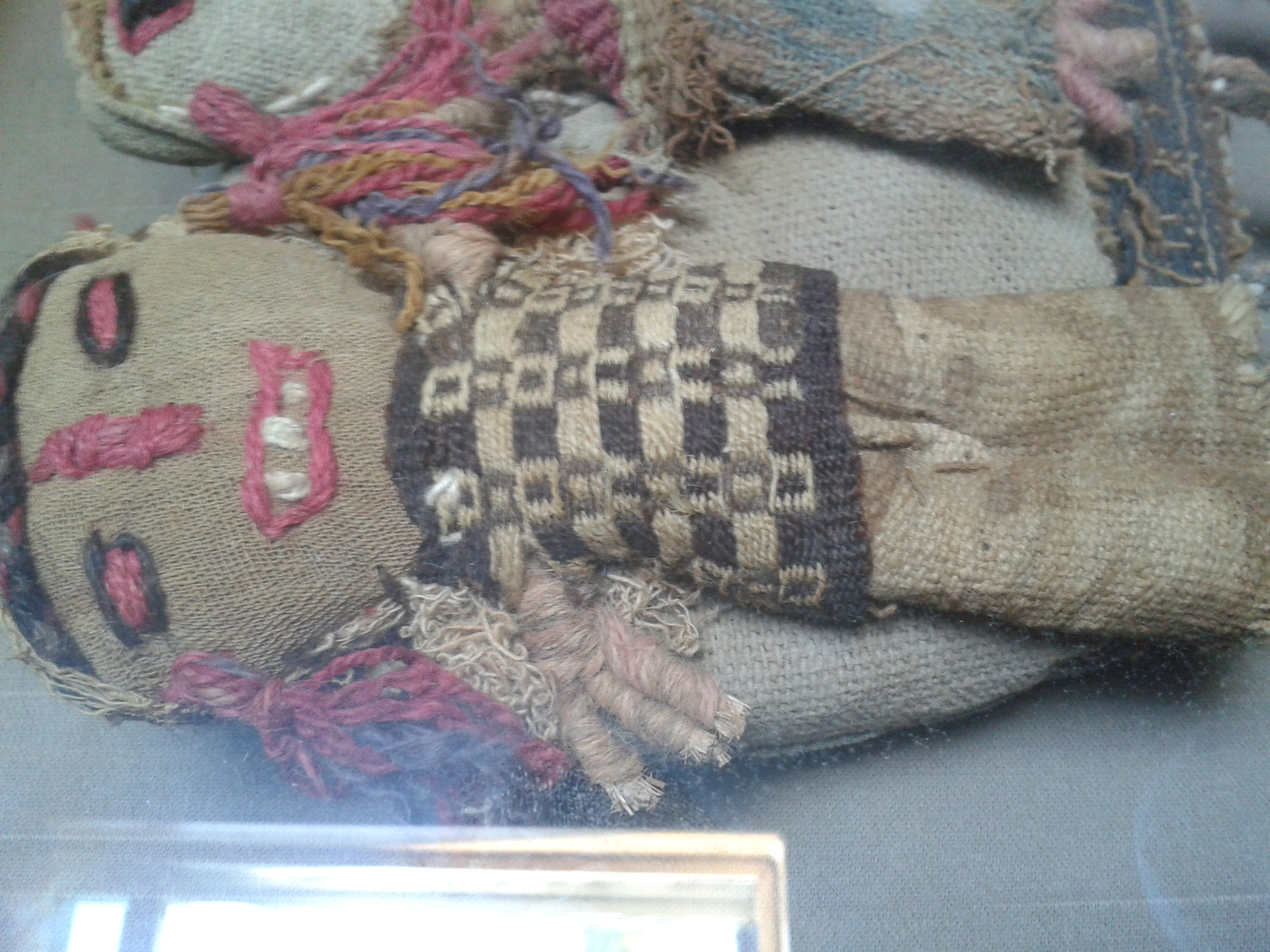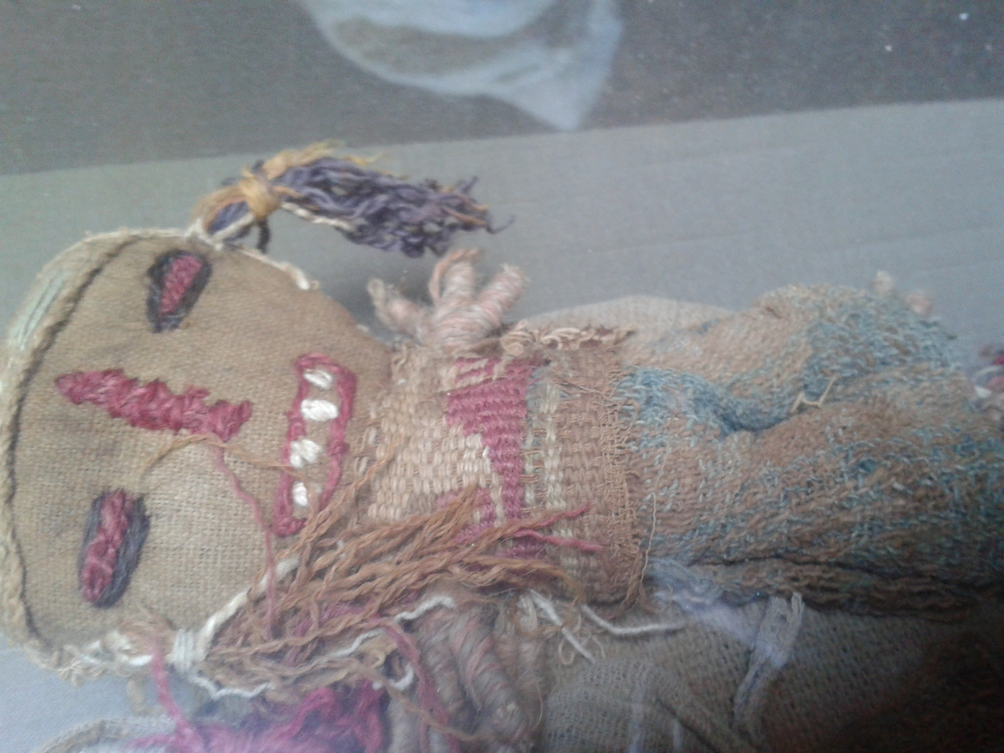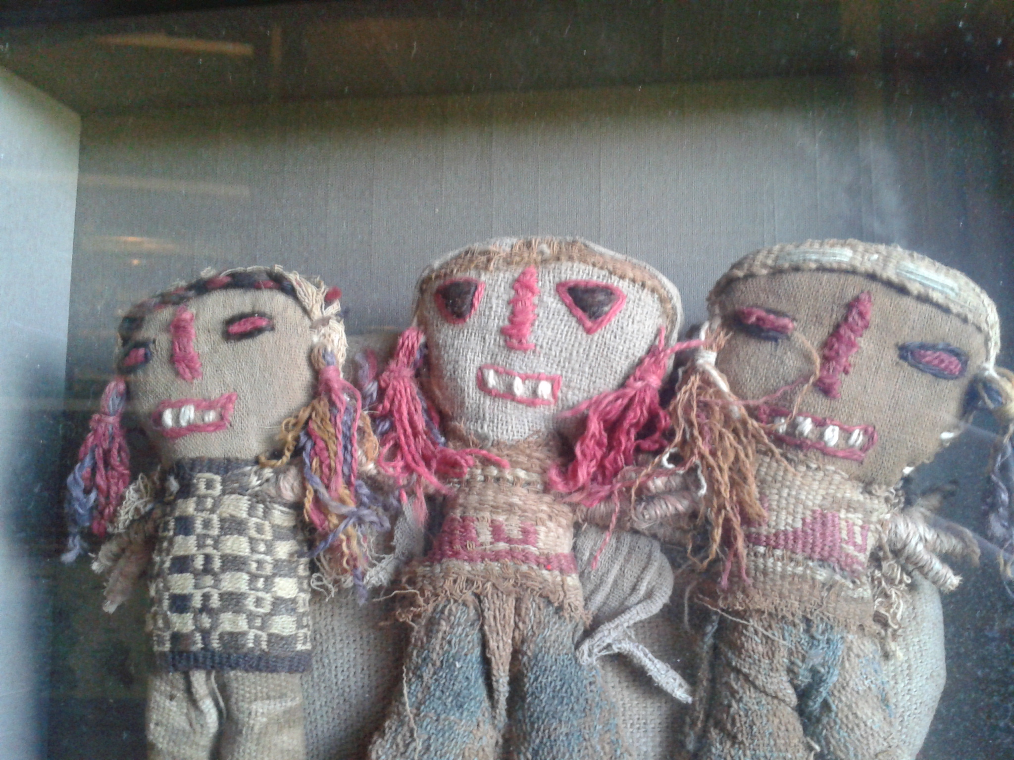 The dolls were assembled from ancient textile fragments from burial sites in Peru sometime in the early 1900's by Peruvian natives as novelty items for tourists.