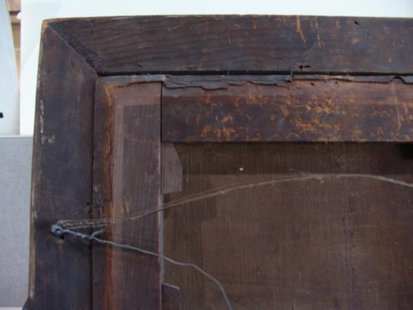 I have closely examined the frame stretcher and discovered the that the painting was relined by James Oliver NY which would date the relining during 19th century.