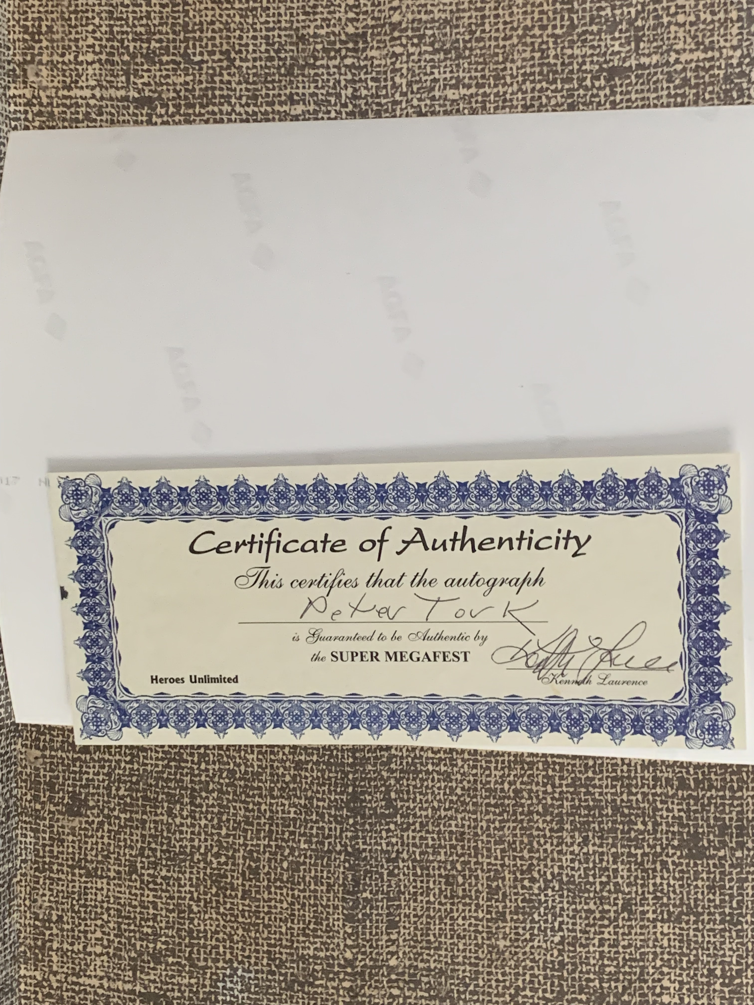 This Peter Tork signed photo is a great collector’s item for Monkees fans and 1960s music enthusiasts. If selling, authentication from a major service could boost its value to the $150 - $300 range