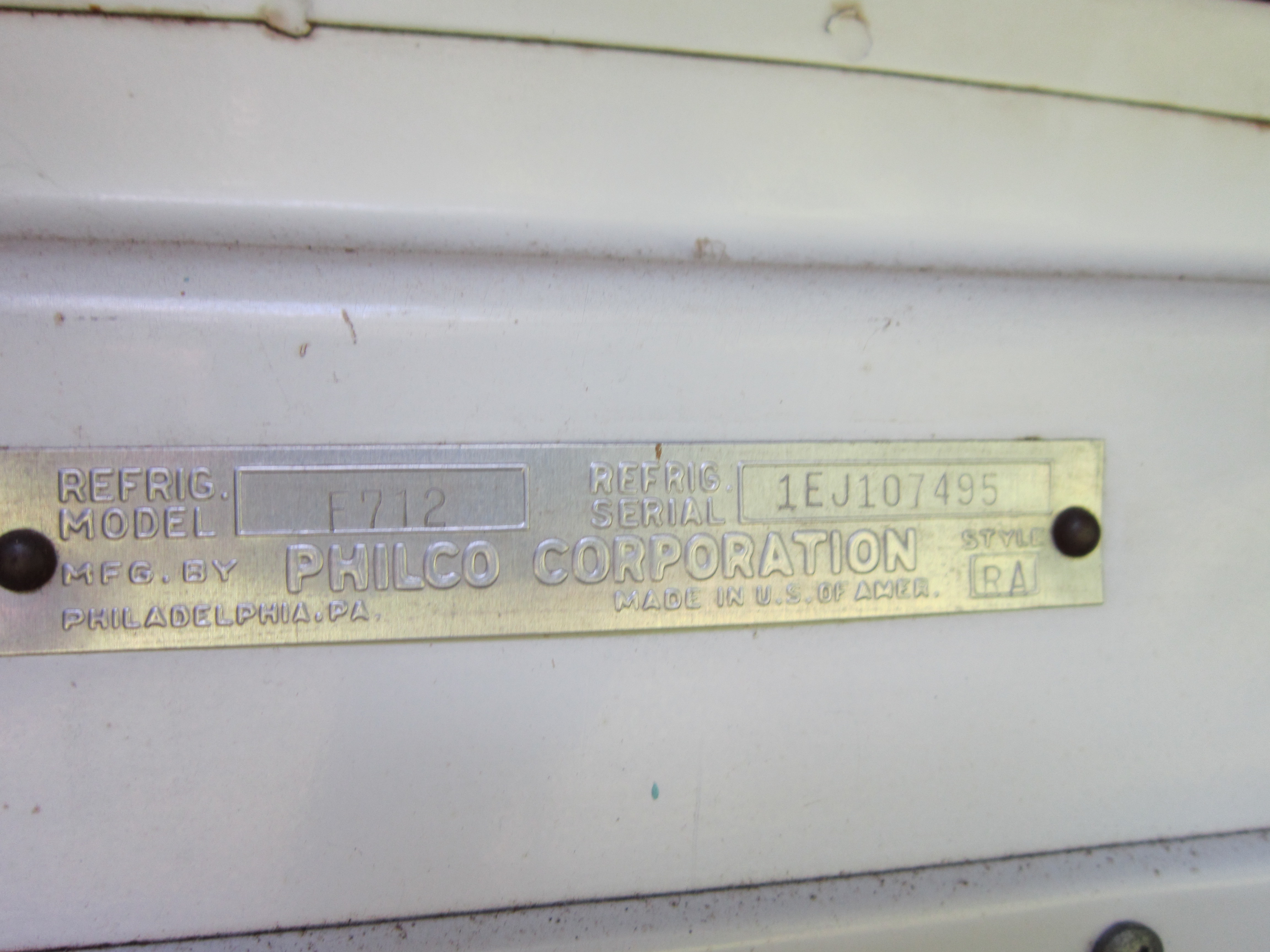 Philco fridge style RA model# F712 serial# 1EJ107495