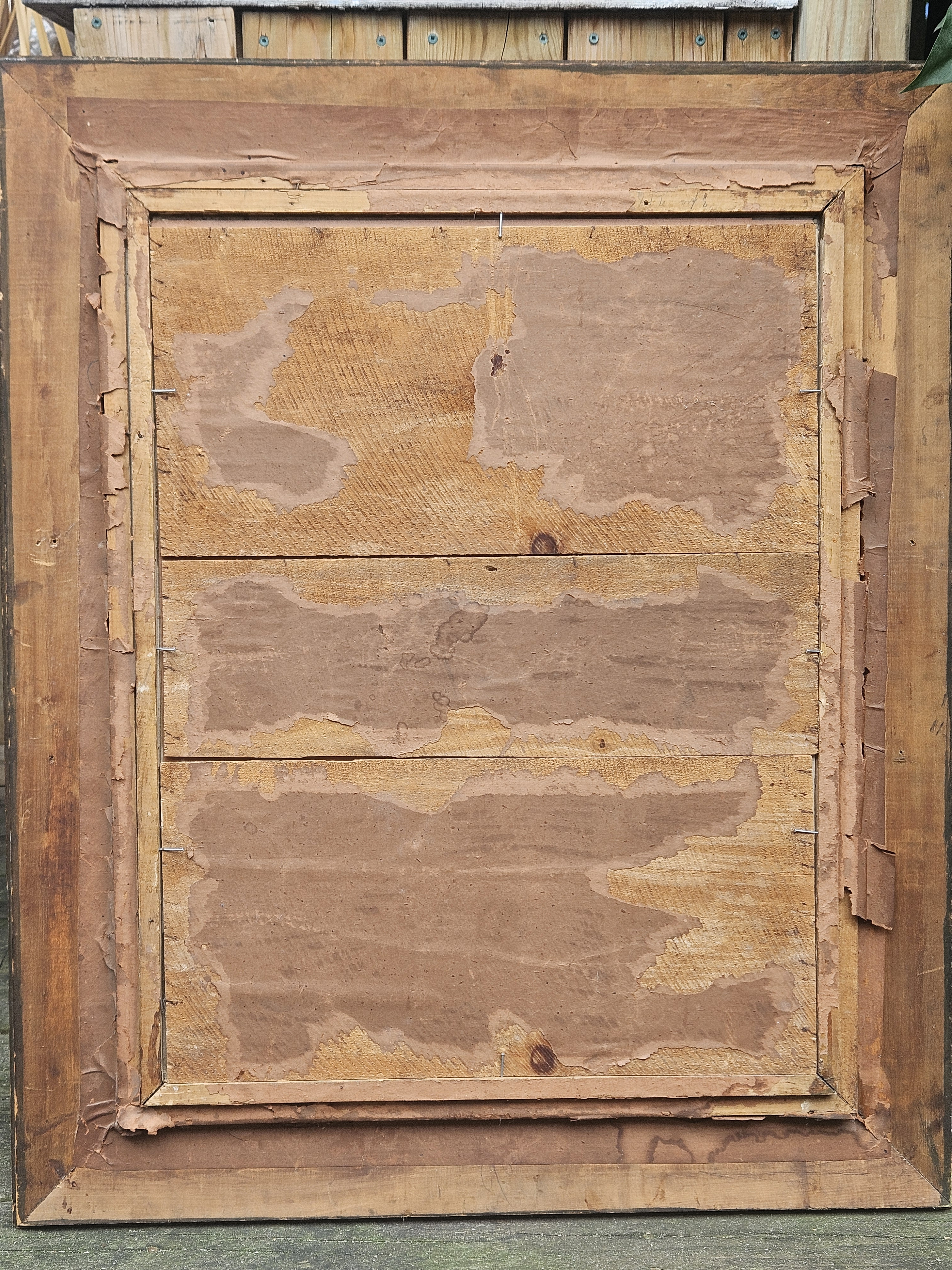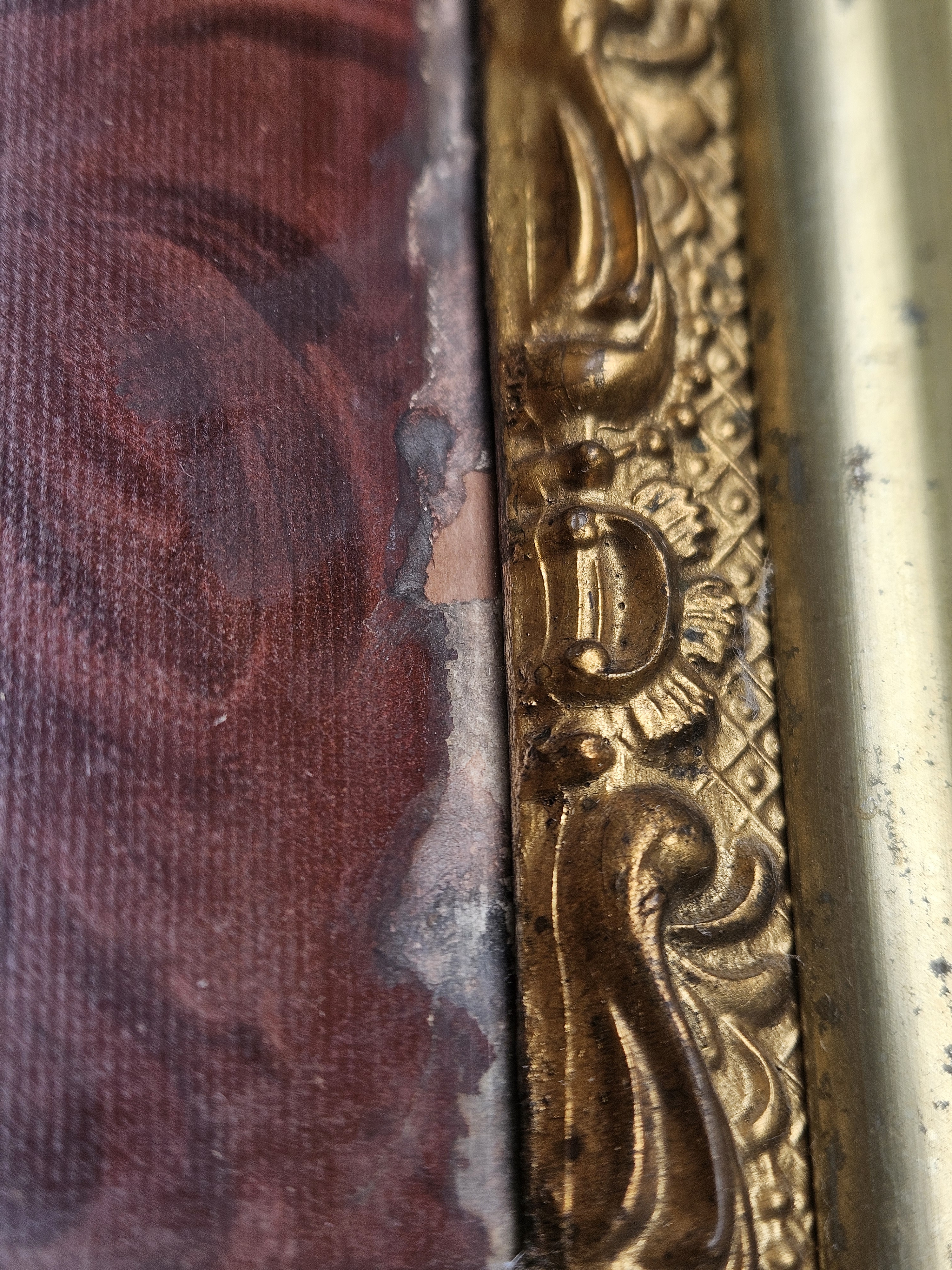 Condition: Fair (notable damage to frame, discoloration/wear to print, no signature or markings found)