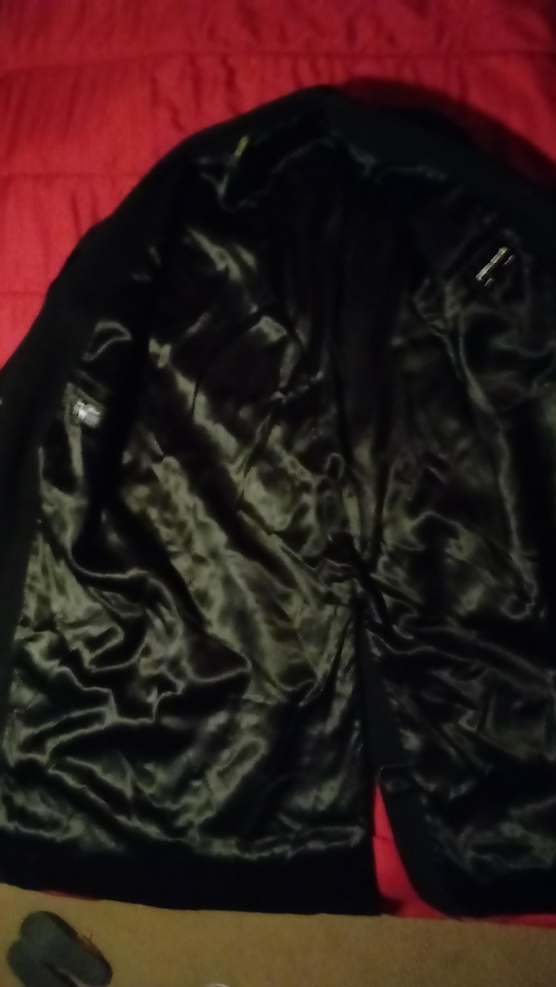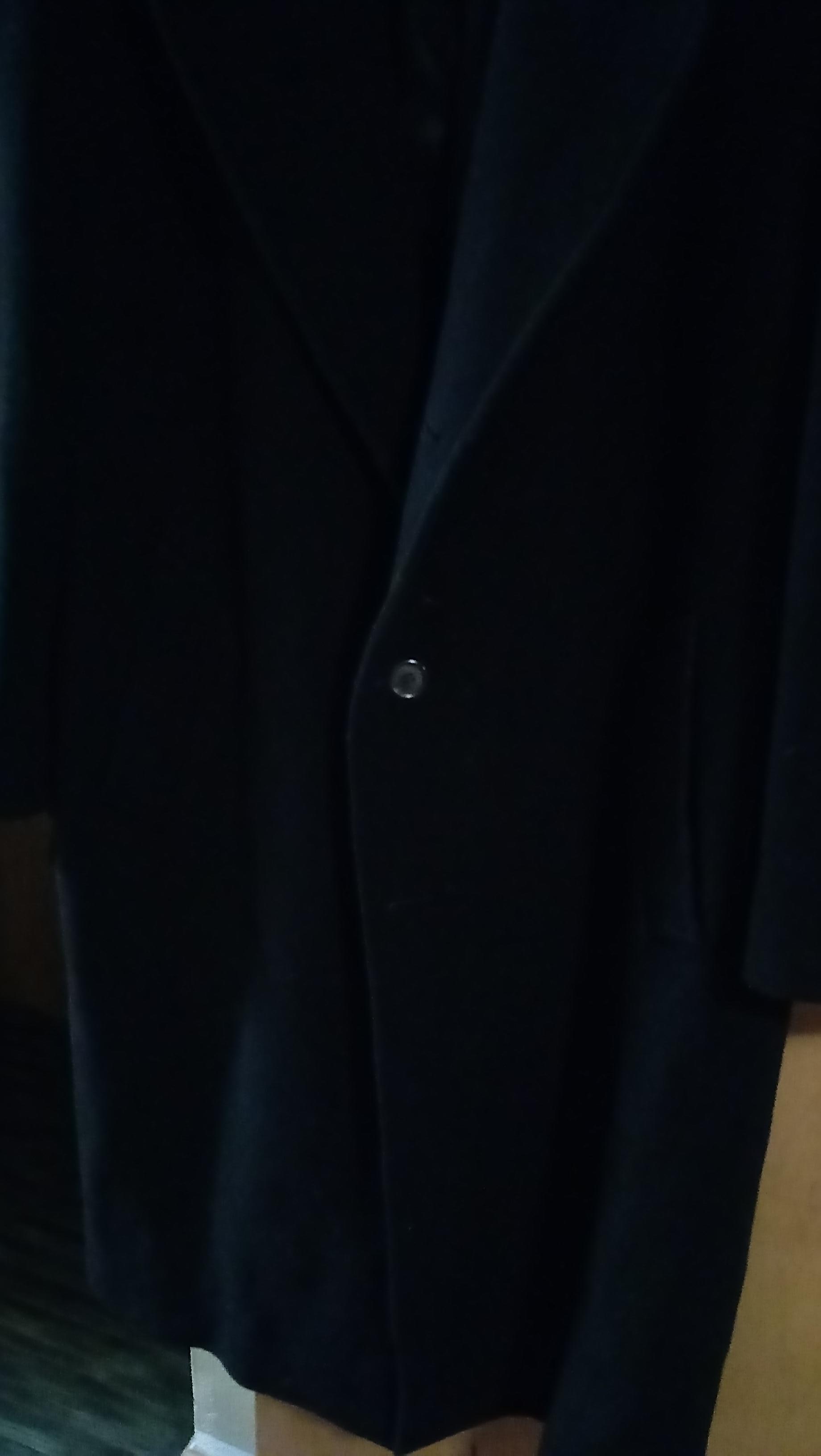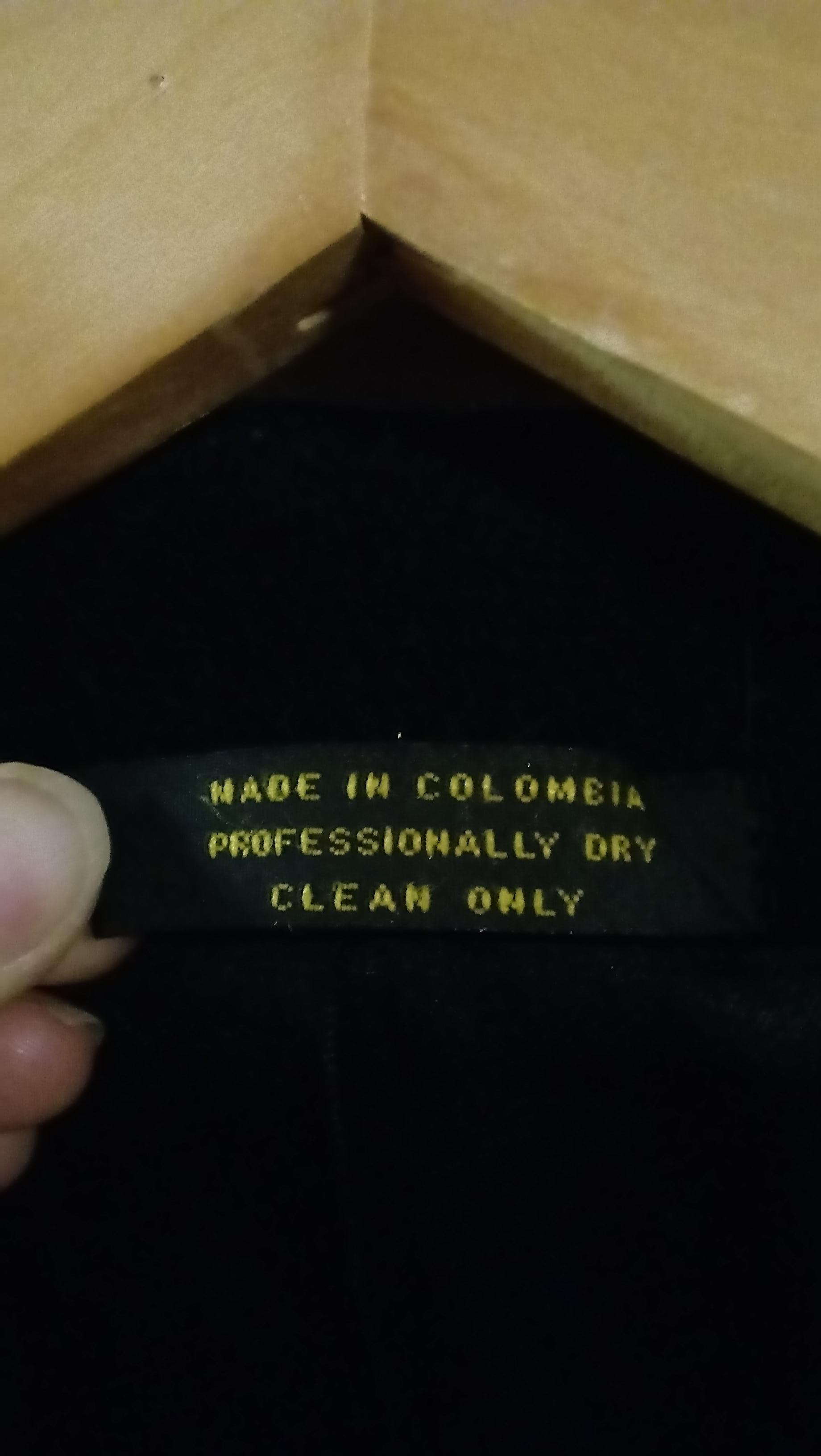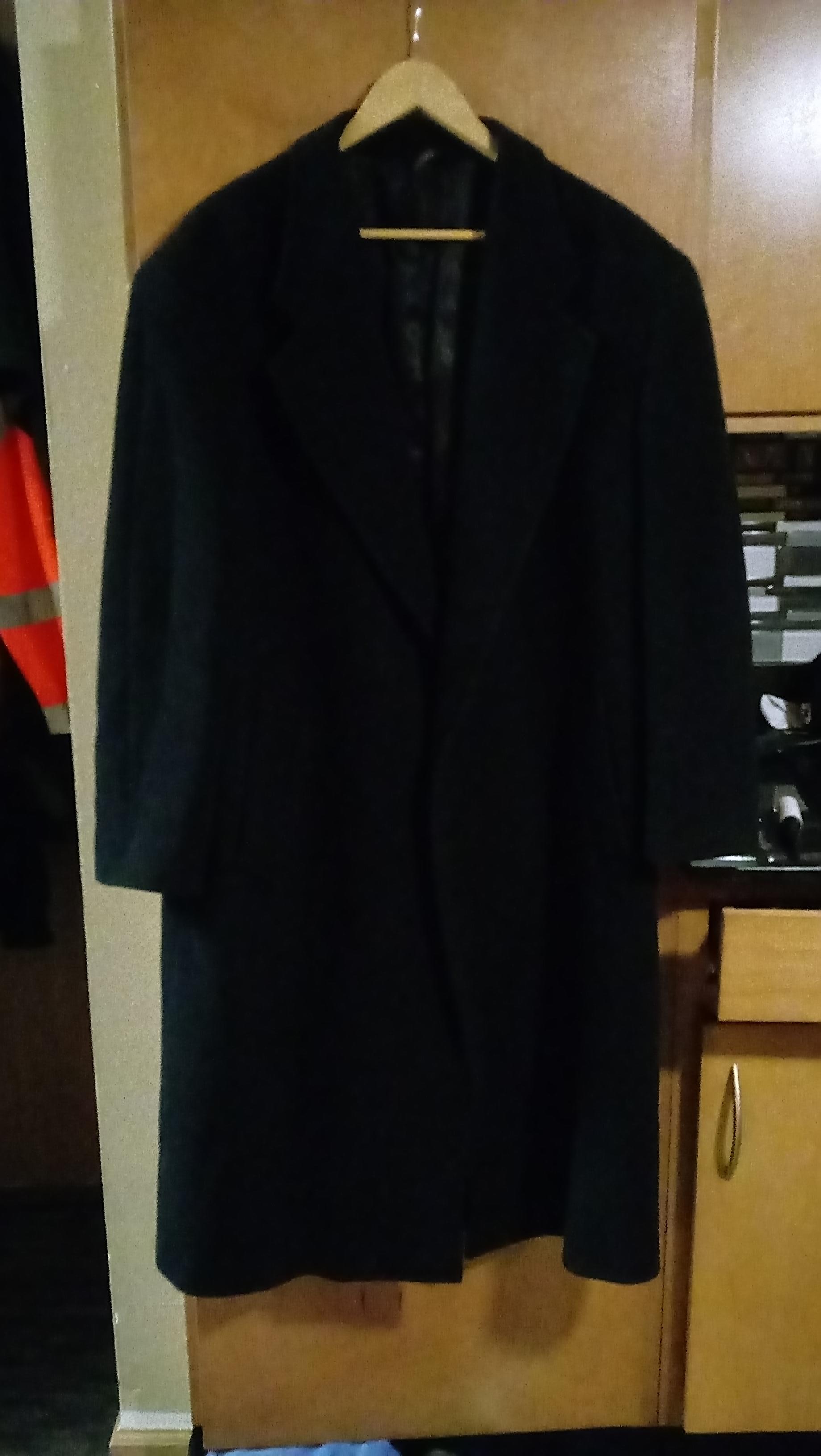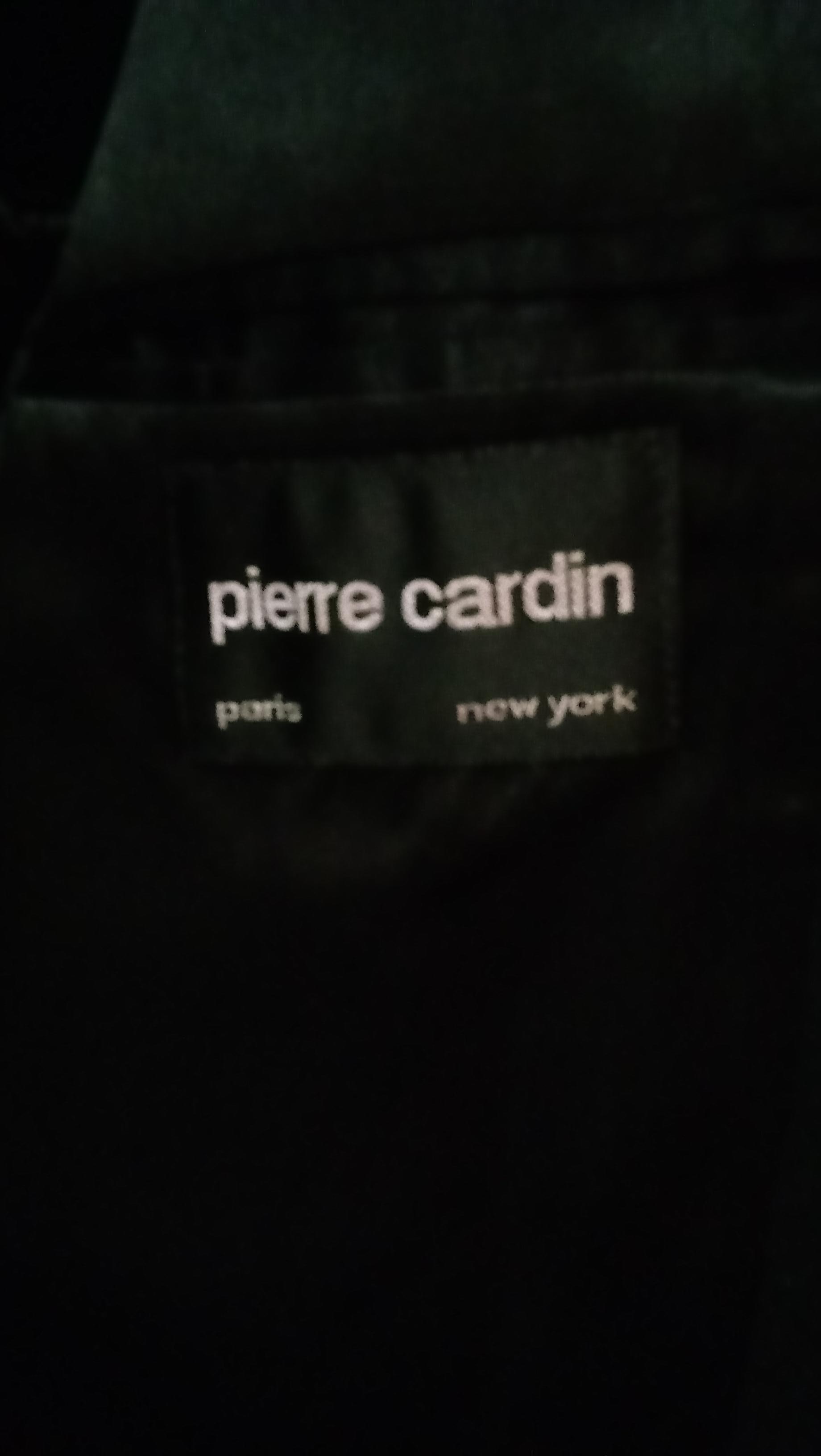 Pierre Cardin coat Color: black Material: cashmere blend, plastic buttons Condition: very good-great Damage: small hole in bottom of one inside pocket. Neck tag has become partially unstitched. Tags read... behind neck: made in Columbia, Professionally dry clean only Front right inside breast: Cashmere blend, fabric made in Italy(picture of a sheep or cow) Front left breast: Pierre Cardin, paris, new york