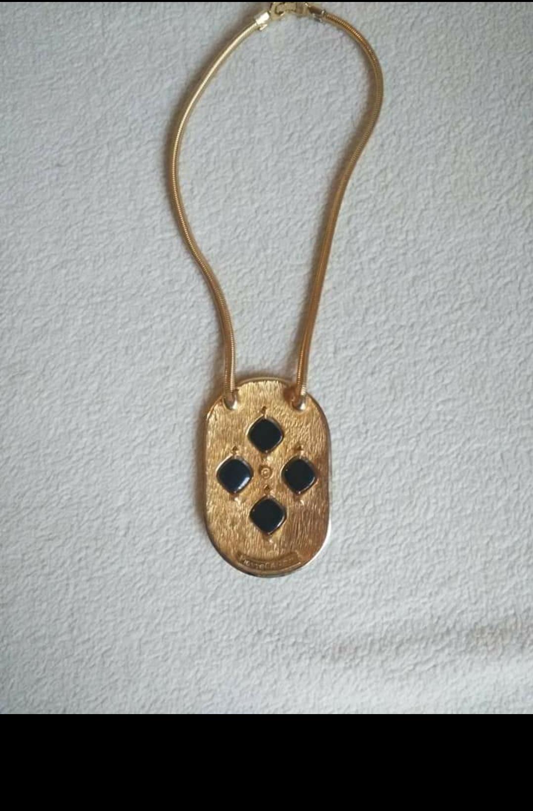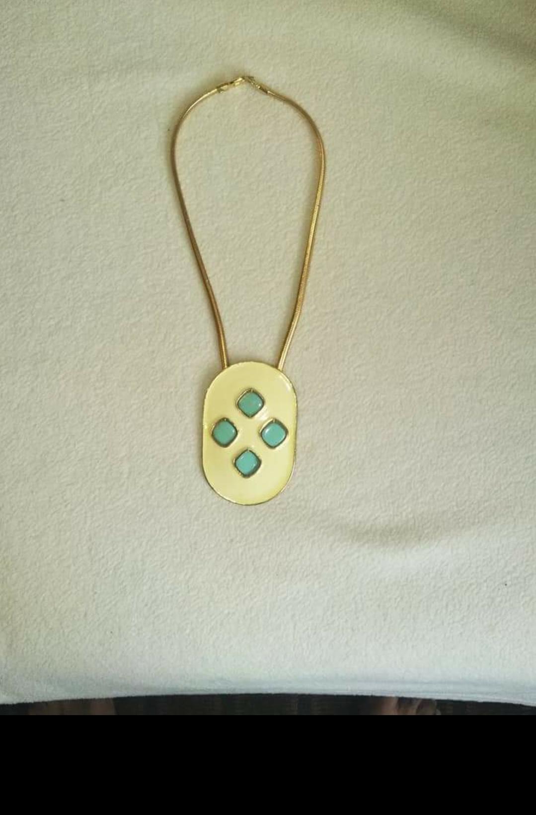 Goldtone PIERRE CARDIN necklace. Featuring 4 dual colored enamel roating shapes.
