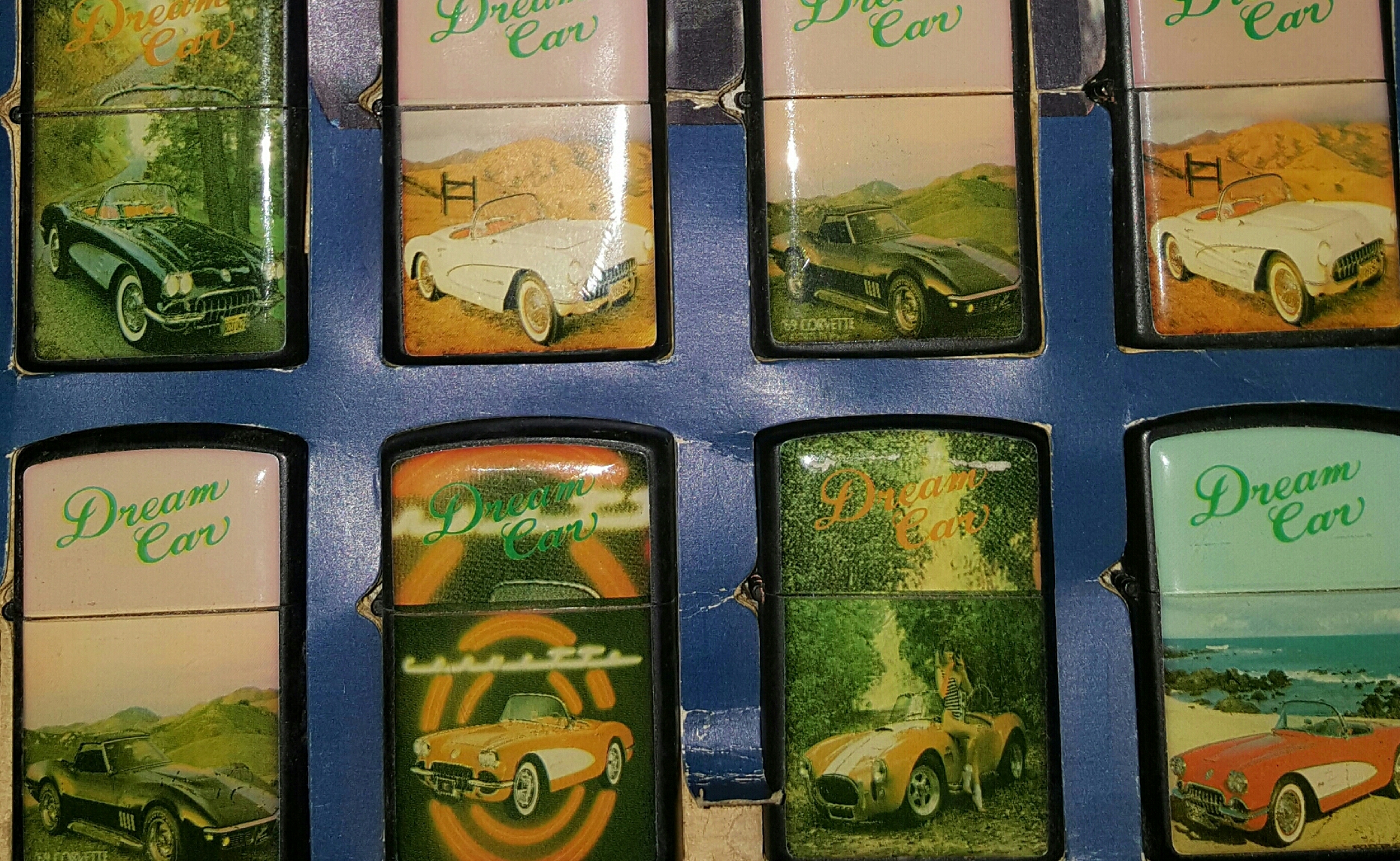 I have 2 sets of 6 Vintage Corvette windproof oil lighters I think from Japan. They've never been used. They do have some very minor wear due to a few moves & the box is a little worse but still much intact. I believe it used to be a display. They all open & close perfectly & I'm sure work but have never had fluid put it. I just don't want to light them up & lower the value. They are lighter than a Zippo but feel just as sturdy.