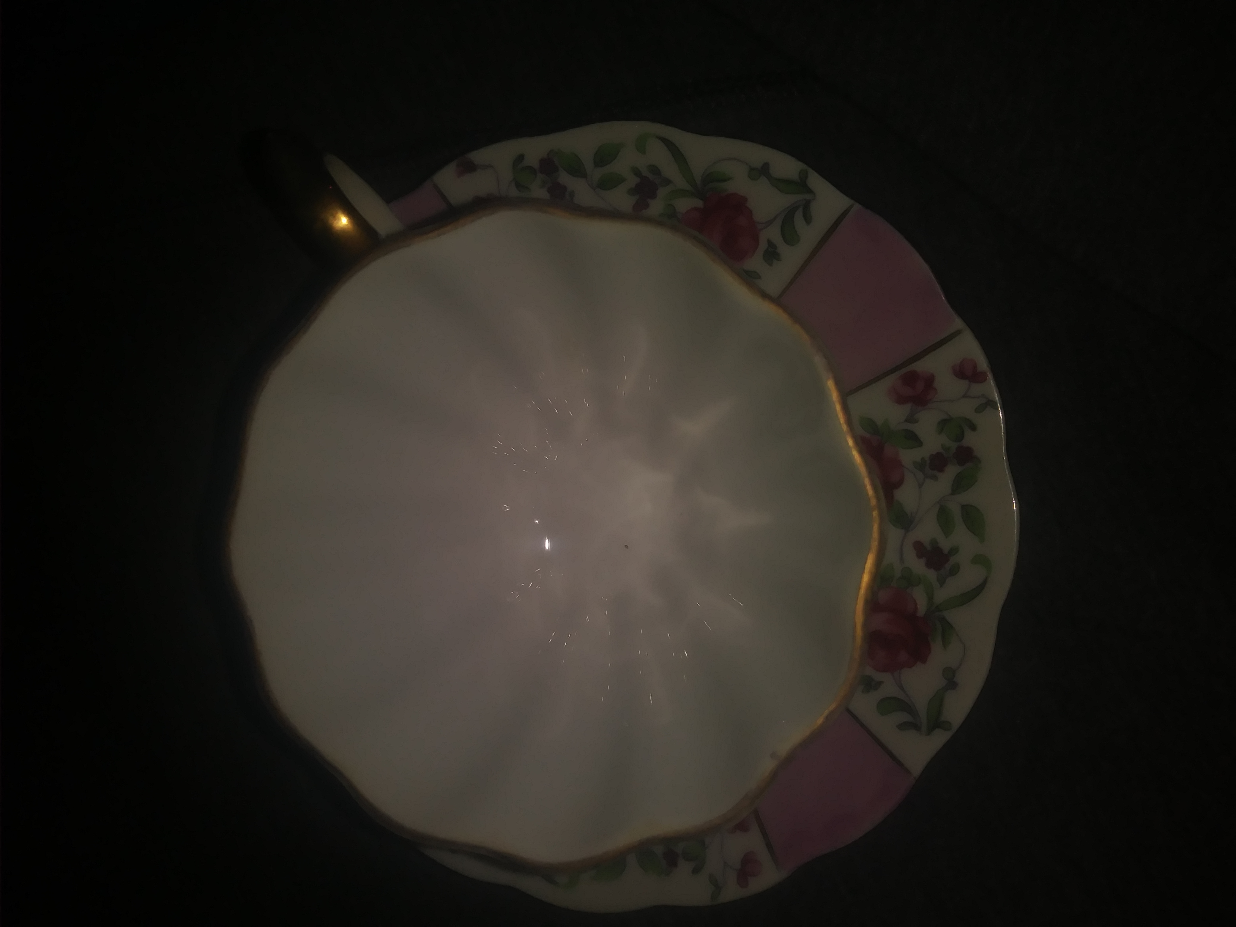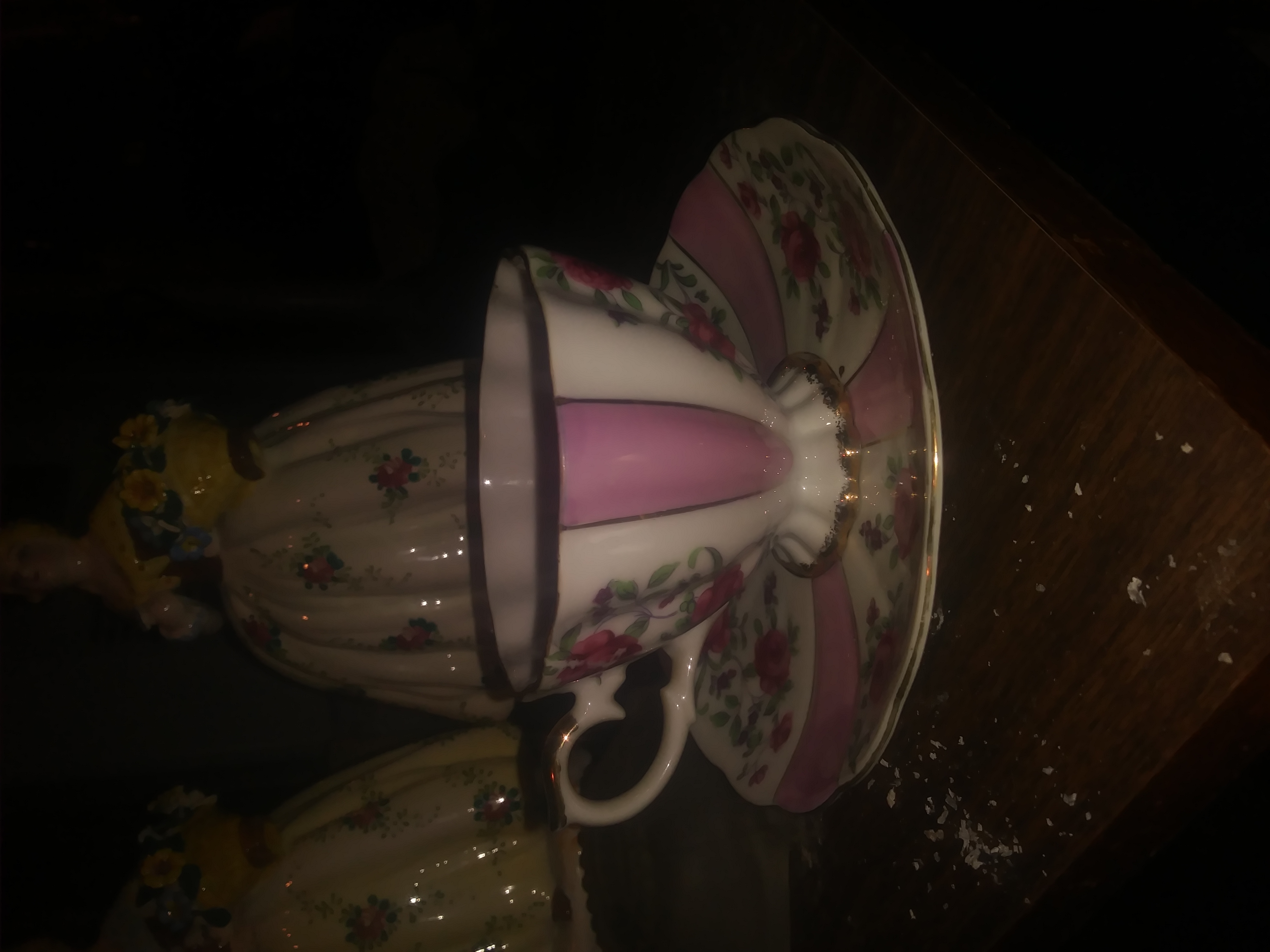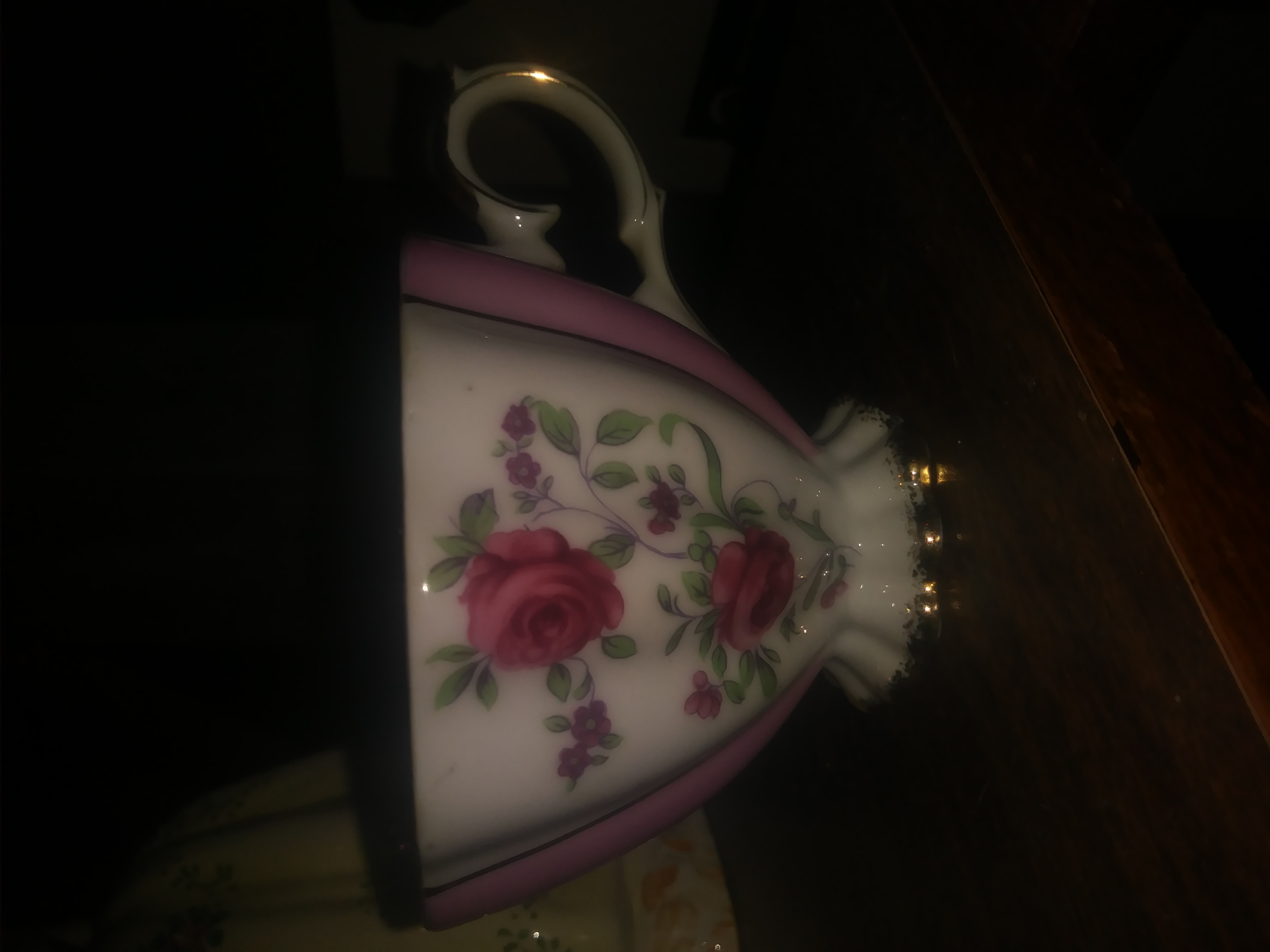 Red roses on cup and saucer