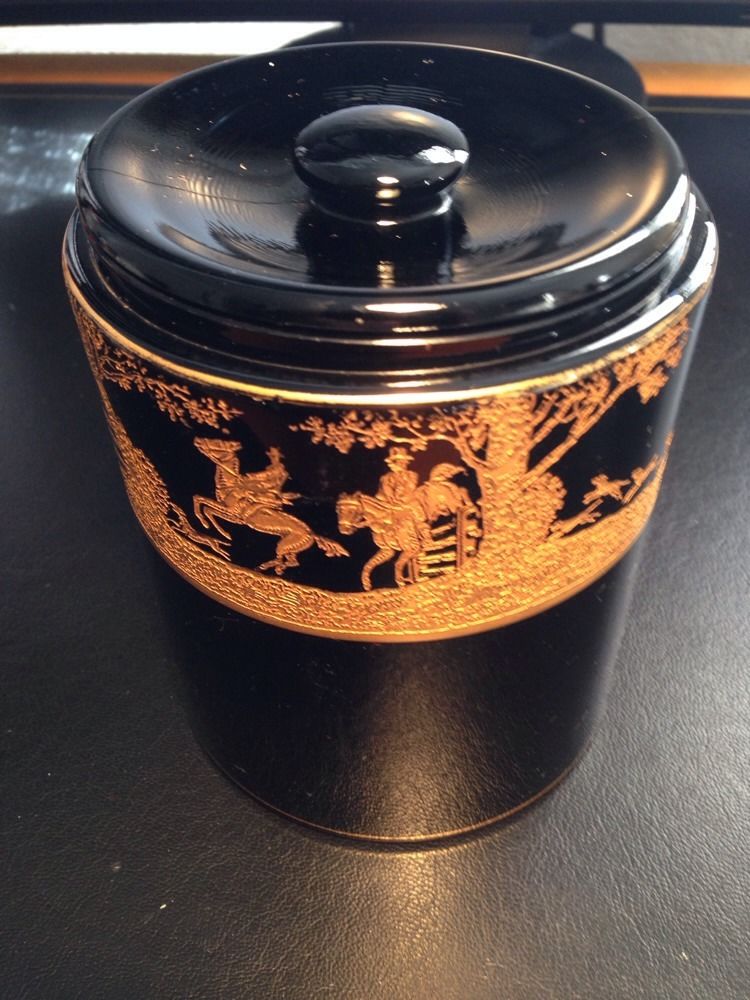 An interesting item a porcelin tobaco jar with a metal assemble on the lid I'm guessing it is changable and this is how you keep the tabaco from molding and fresh.