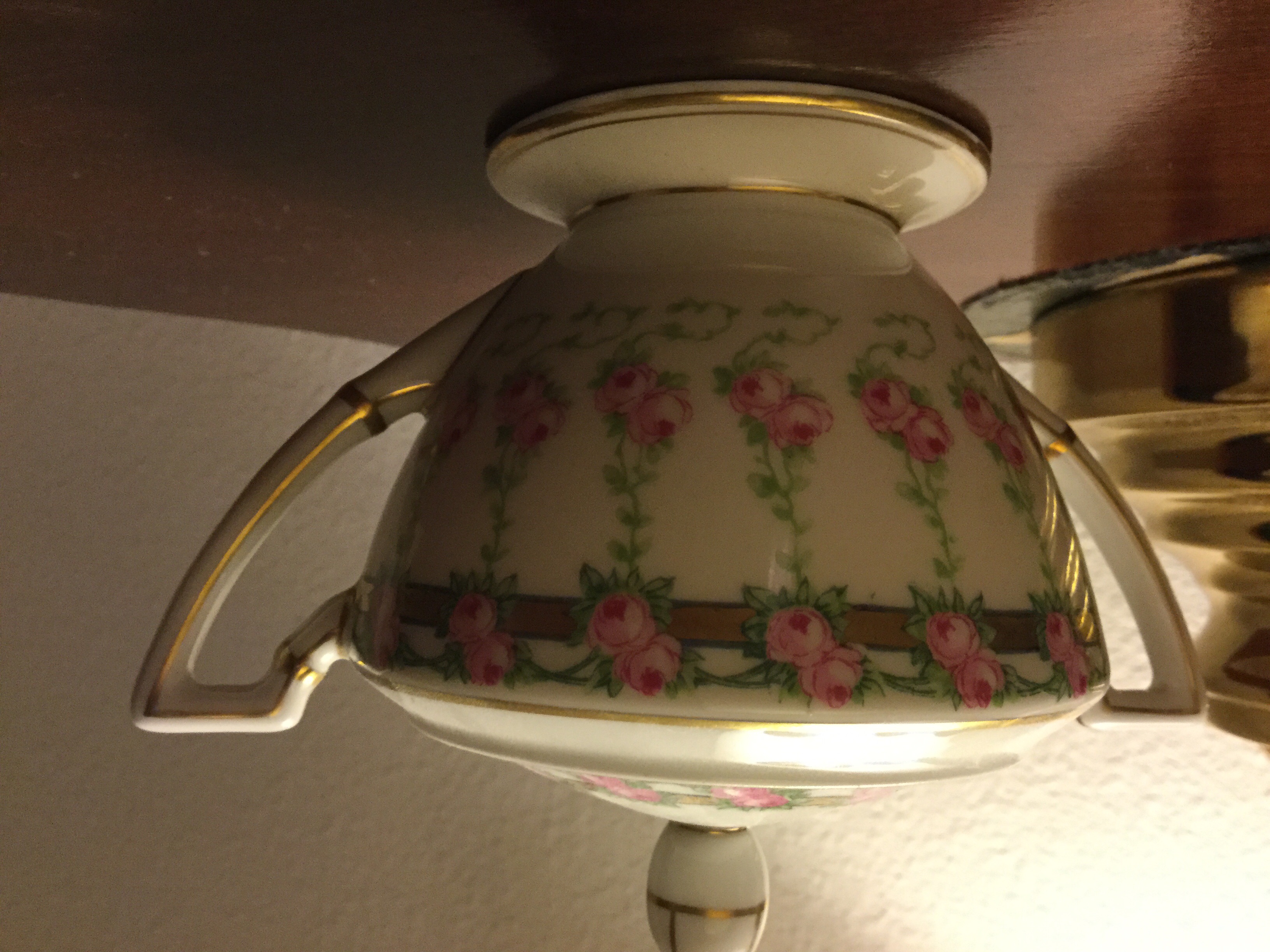 Pikehammer sugar bowl and creamer marked "Titanic Austria" on bottom. Slight hairline crack on sugar bowl cover. Also marked 2900/11 or maybe 2960/11