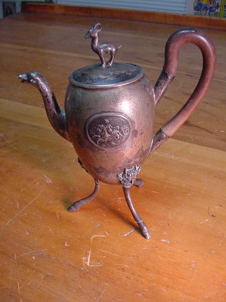 I think it is silver plate, possible pewter. The handle appears to be bone.