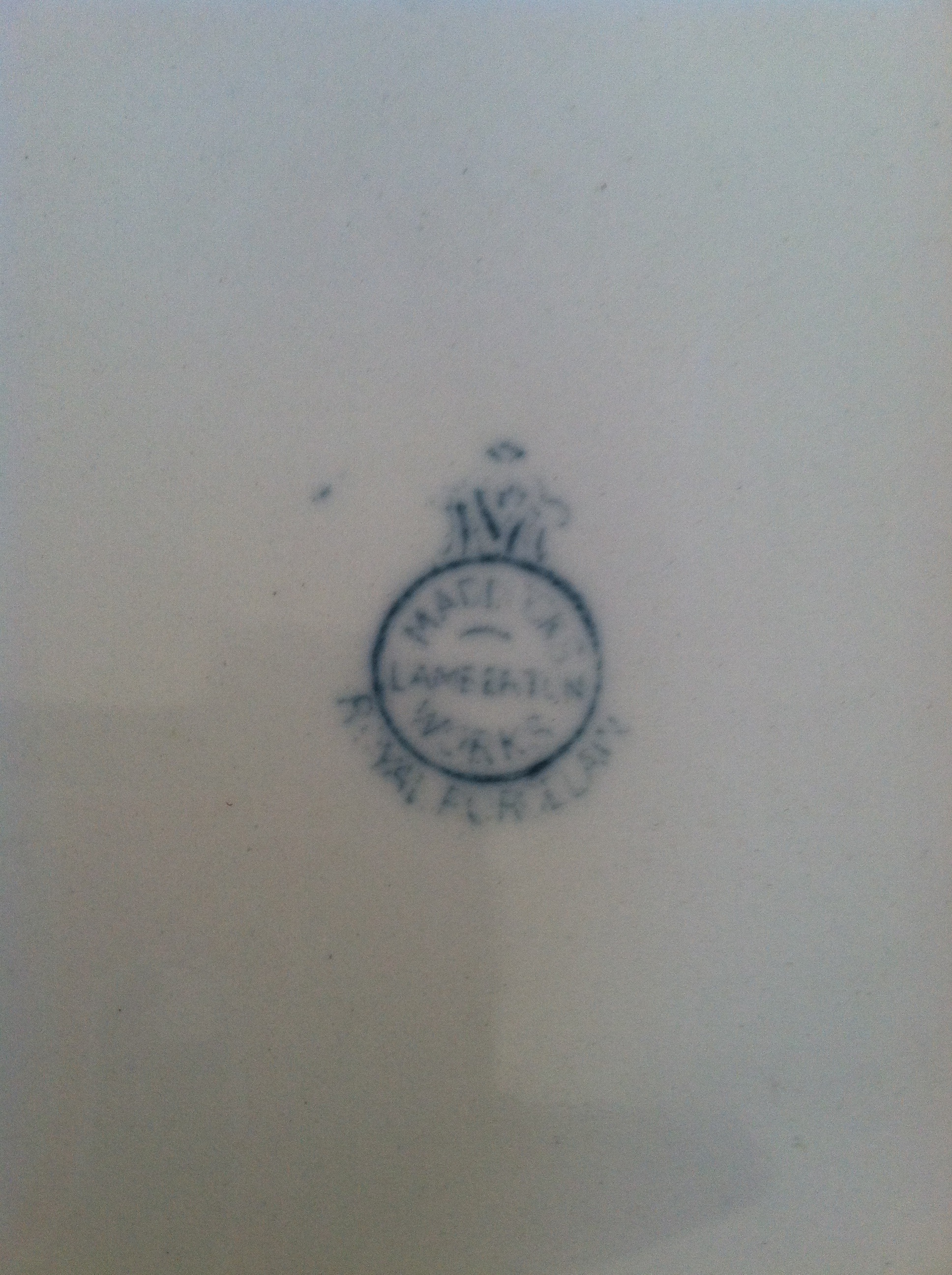 Maddocks and Lamberton Works Royal Porcelain Pitcher and Basin. White with blue ornamentation