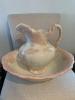 <p>Your wash basin set is a 20th Century reproduction of the mid Victorian style originals, which were produced by potteries centered in Staffordshire, England. The reproductions tend to be made in China and south east Asia, and they generally sell for less than $50.00.</p><p> </p><p>Lovejoy </p>