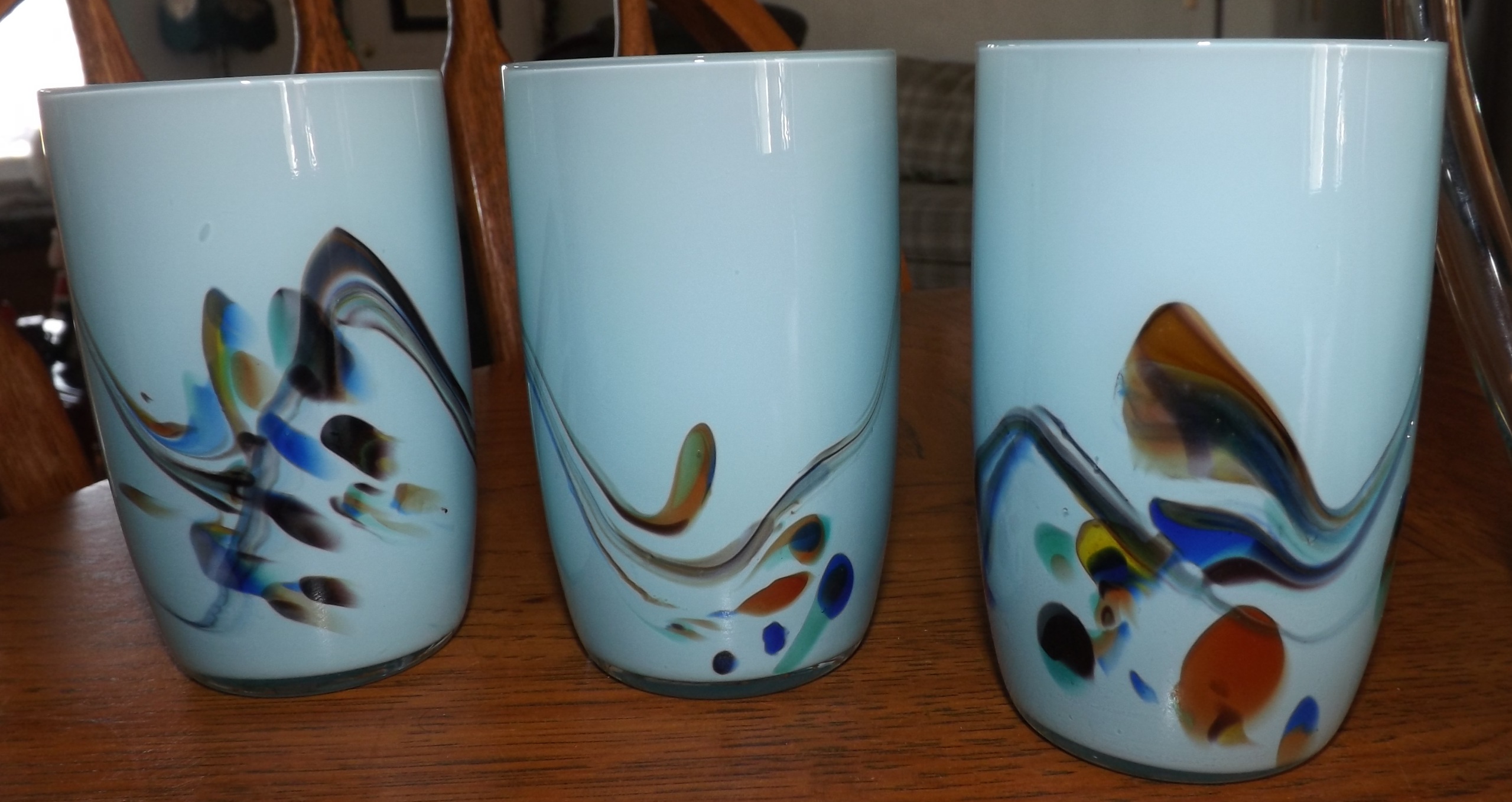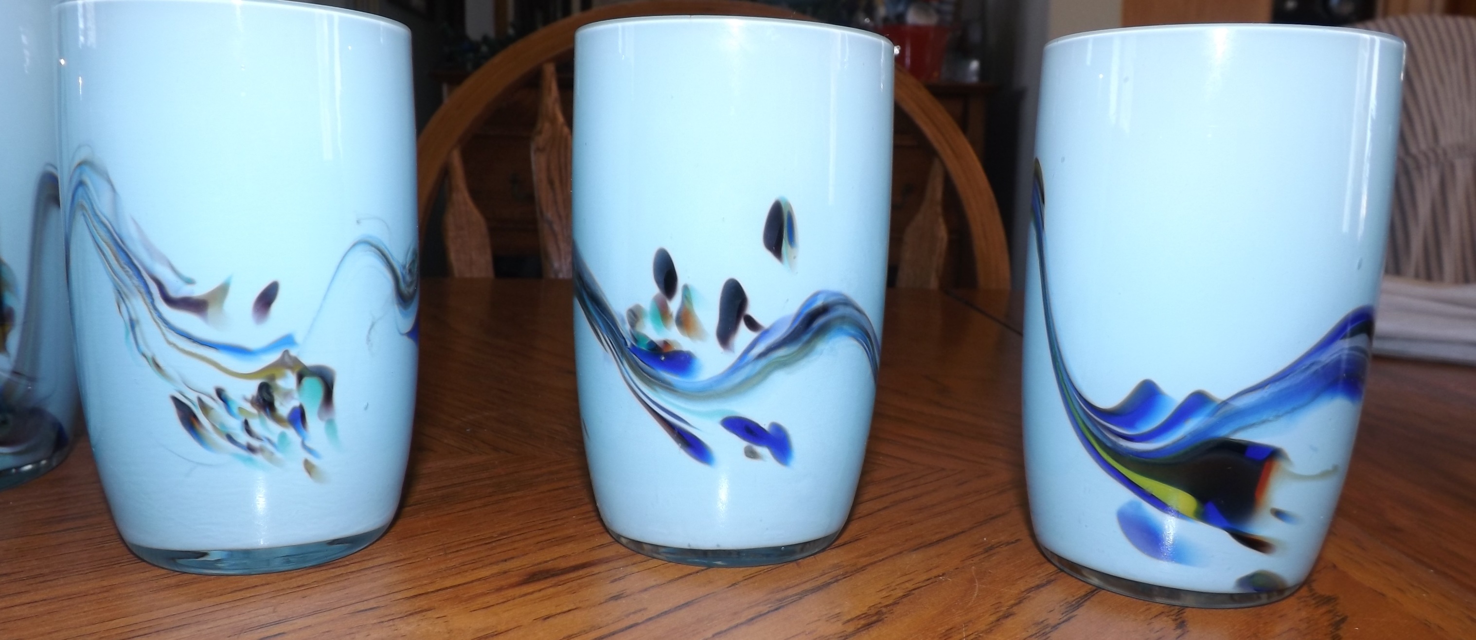 We receive this set from my husband aunt in Louisiana. She has passed on, and I can't get any information about them. It is an overlay glass medium. I can't see any maker's mark.