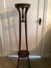 Wooden plant stand square on top and bottom with a round connector mid way up.. held together with flat head screws