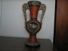 Bought 12 years ago at a flea market in Cape Breton Nova Scotia Canada.Plaster with horse hair with cream patina.It has absolutely no markings to be found! it is 25 inches tall 12 inches wide at base and hollow and rough inside.