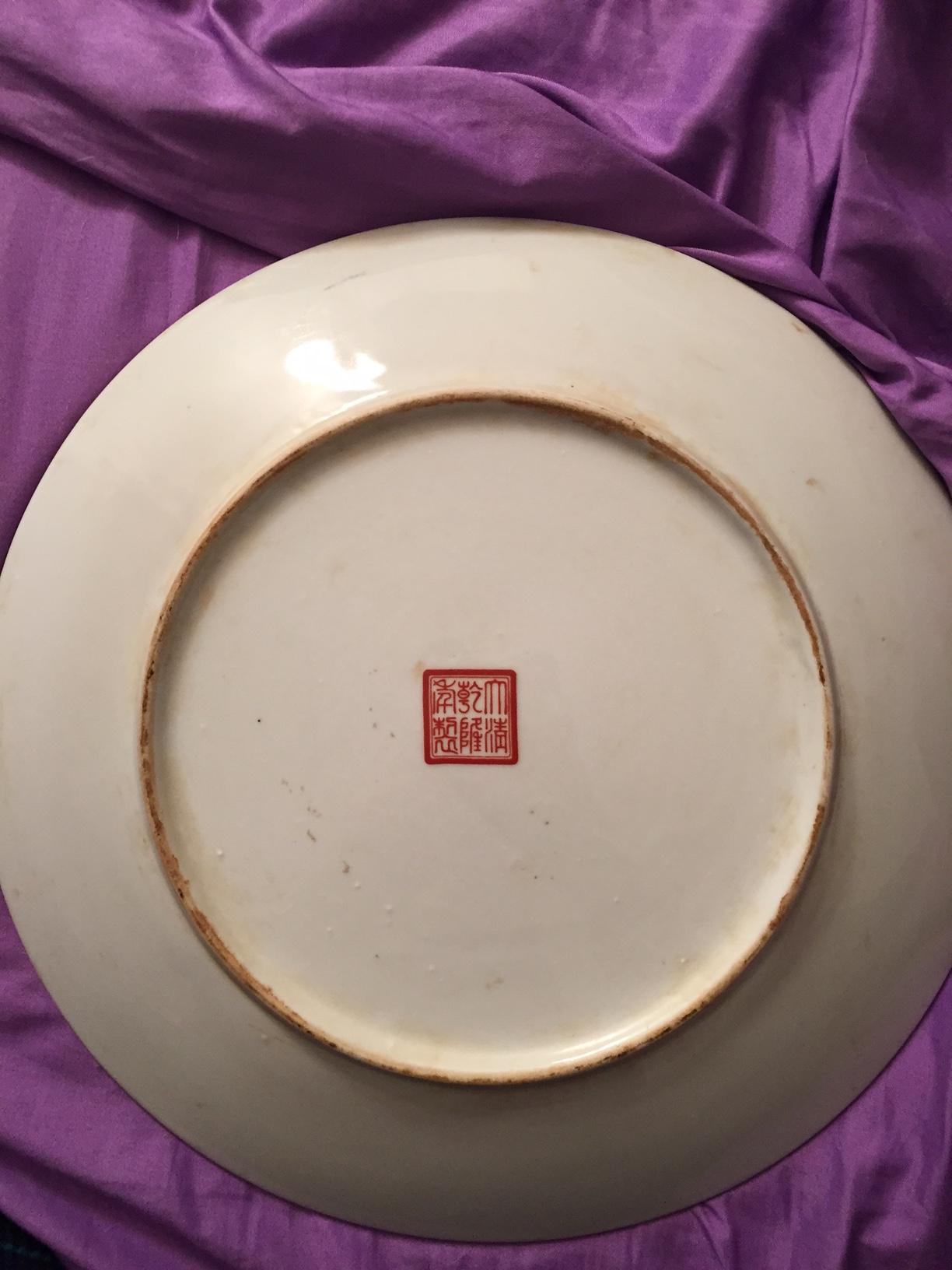 The back has a mark but it looks like heirogriphic. This is the only marking on the plate. Can anyone help to figure out it's worth? I'm not a collector but this item drew me over to it at an estate sale.