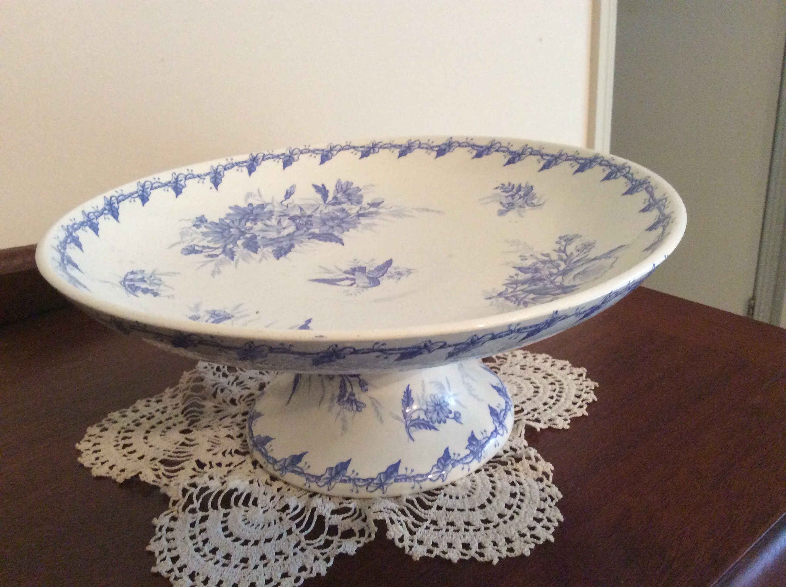 blue decoration. Approx 20 cm in diameter and 10 cm high.