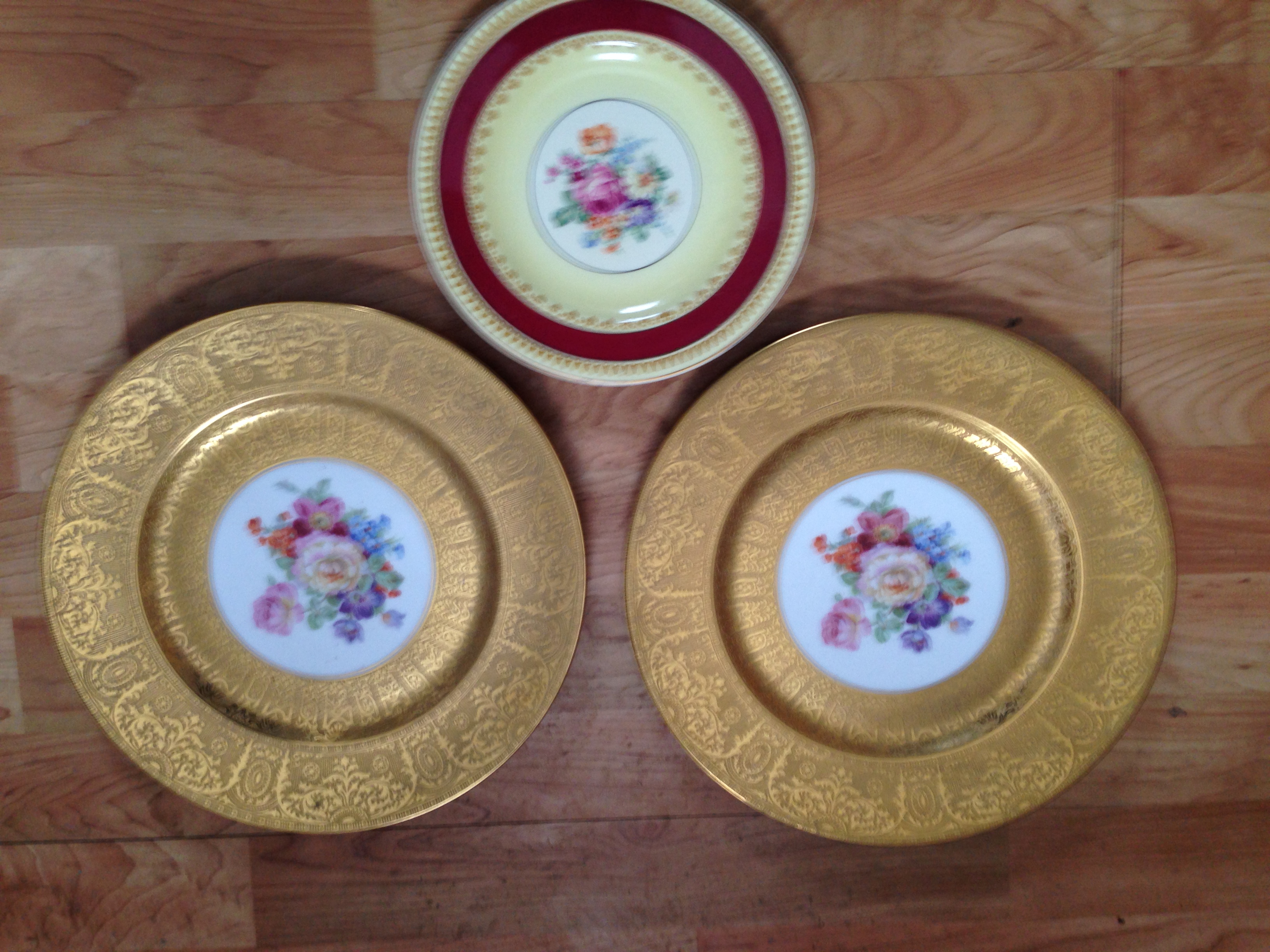 I inherited these three plates my mother had hanging on her wall. Can anyone tell me anything about them? Are they worth anything?