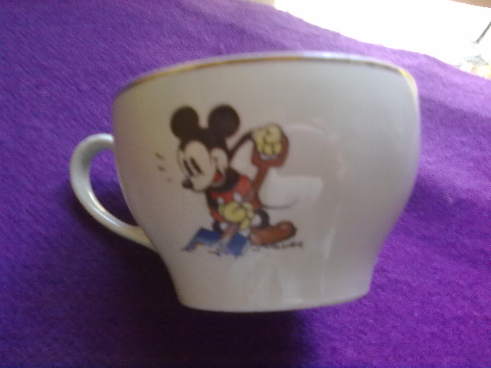 Porcelain food Set brand "SUOMI FINLAND ARABIA", with designs of Mickey & Minnie Mouse Disney , Old dating 1940-1945, the cup has a cracks in the holder, dishes in perfect condition.