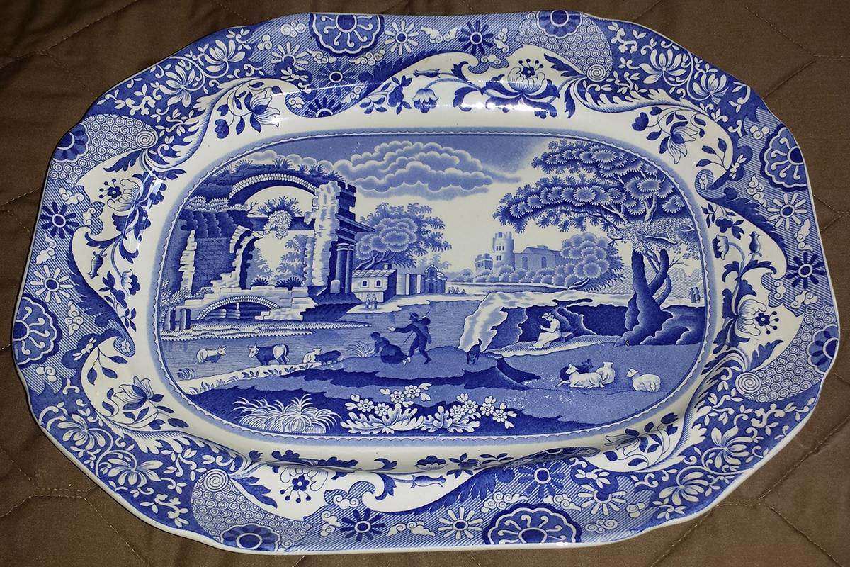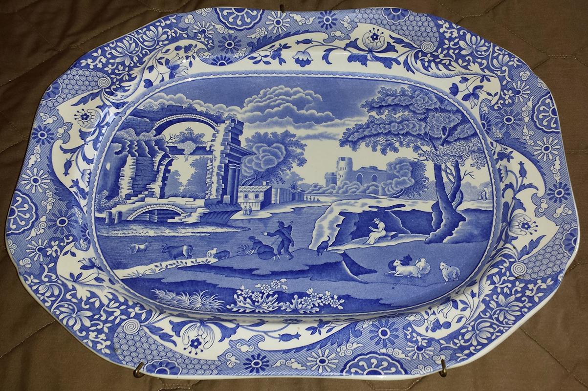 The Spode and Johnson Bros. pieces are 20th century reproductions of mid 19th Century English "Flow Blue" earthenware made after World War Two (1945) and not worth very much, under $50.00.