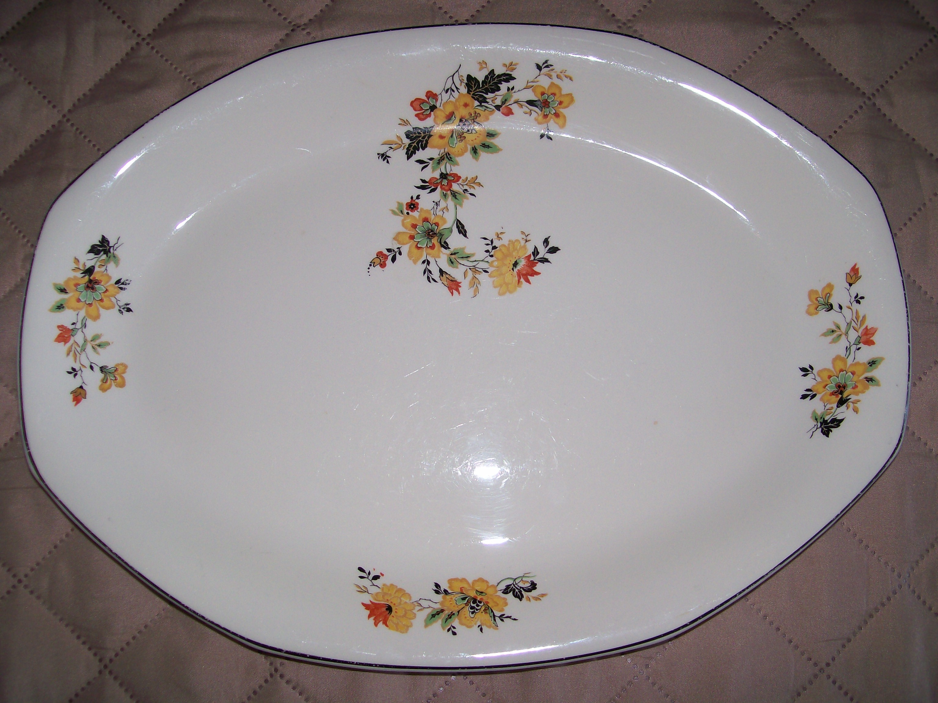 Platter :platter with yellow flowers, trim around platter- 13 3/4" length; 10
