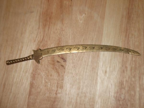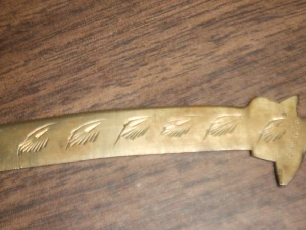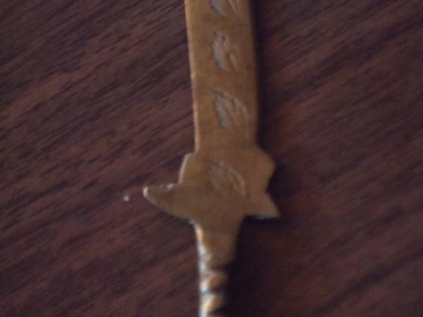 I DO NOT REALLY KNOW MUCH ABOUT THIS ITEM. MY FATHER FOUND THIS WHEN HE WAS A LITTLE BOY IN A DIRT PILE, WHERE A POST OFFICE WAS GOING TO BE BUILT IN NORTHWESTERN PENNSYLVANIA. HE TOLD ME BEFORE THE "DIRT PILE" IT WAS JUST A WOODED AREA. I'VE SPOKEN TO SOME PEOPLE WHO SAID IT LOOKS LIKE A LETTER OPENER FROM THE 1920'S. I'M REALLY CURIOUS ABOUT IT BECAUSE ABOVE THE HILT OF THE "SWORD" THE WORD INDIA IS ENGRAVED. IT'S VERY HARD TO SEE AND EVEN MAKE OUT. IT'S ENGRAVED BY USING TINY DOTS. ANY INFORMATION ABOUT THIS ITEM WOULD BE VERY HELPFUL.