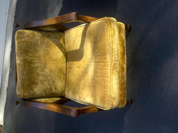 I have this wooden armchair. Has beads along the edge where fabric meets wood. Not sure where it is from or when it was made. It was my grandfather's and I am running out of room at my house. My hope was to sell or donate it and I would like a rough idea on what it is worth.
