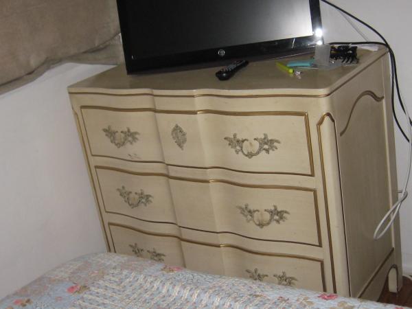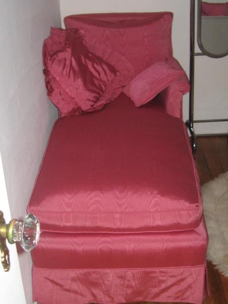 Queen size headboard,down filled chaise & 2 end tables,3 dressers and matching bedskirt and drapes