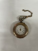 Philadelphia watch case co pocket watch with betsy ross movement, gold, with attached chain and heart slider.