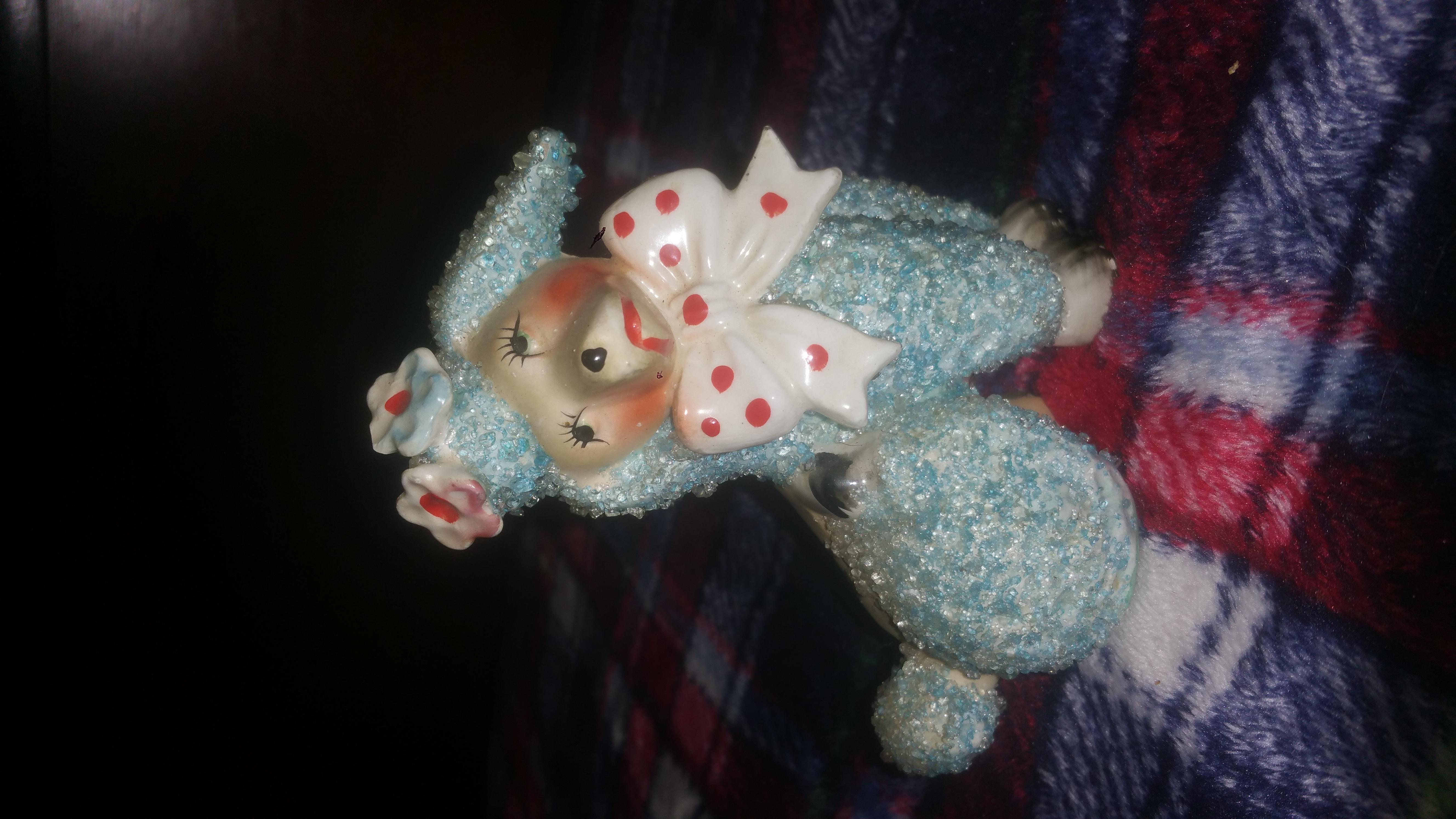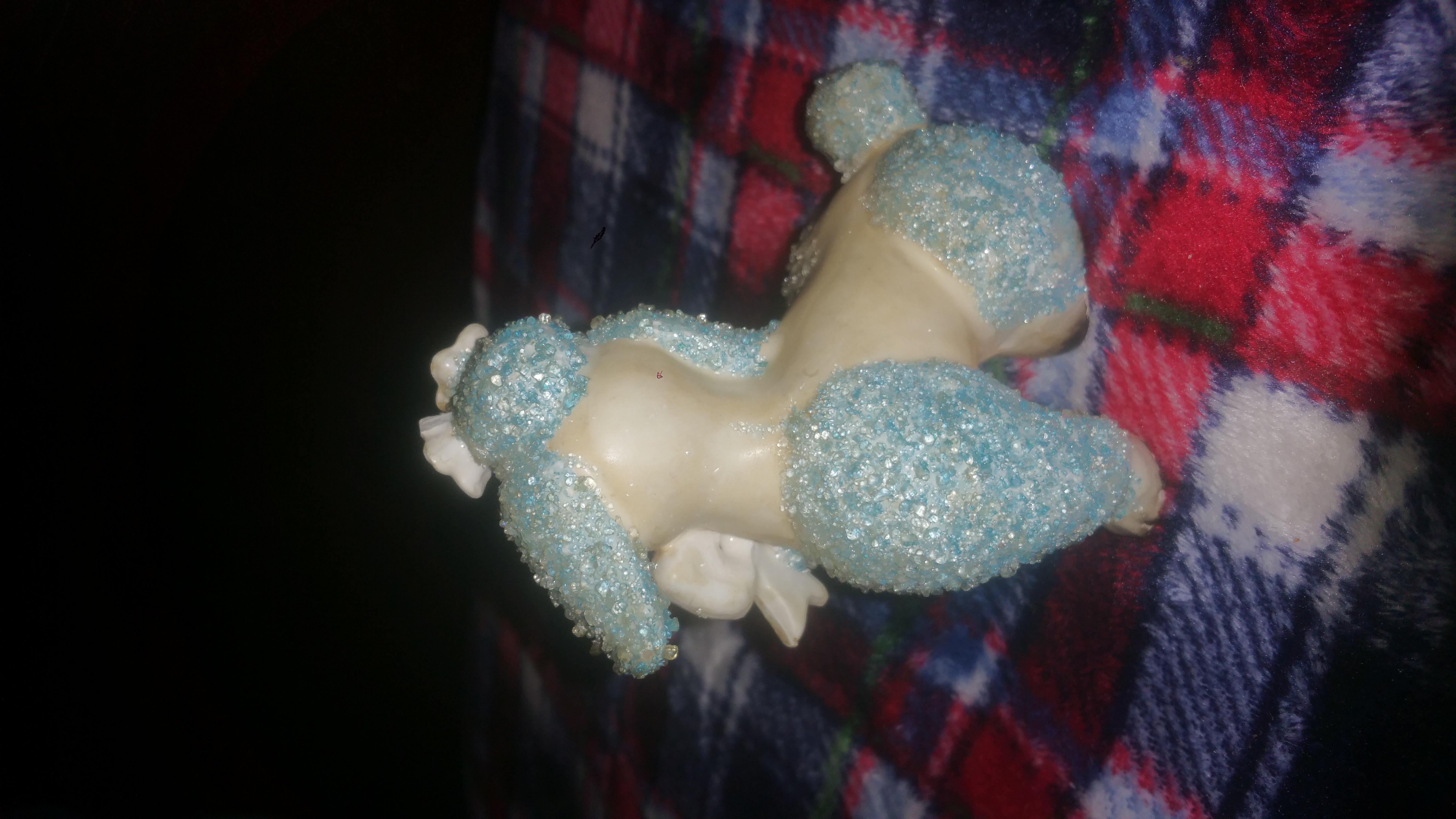 Blue and pink old porcelain poodles