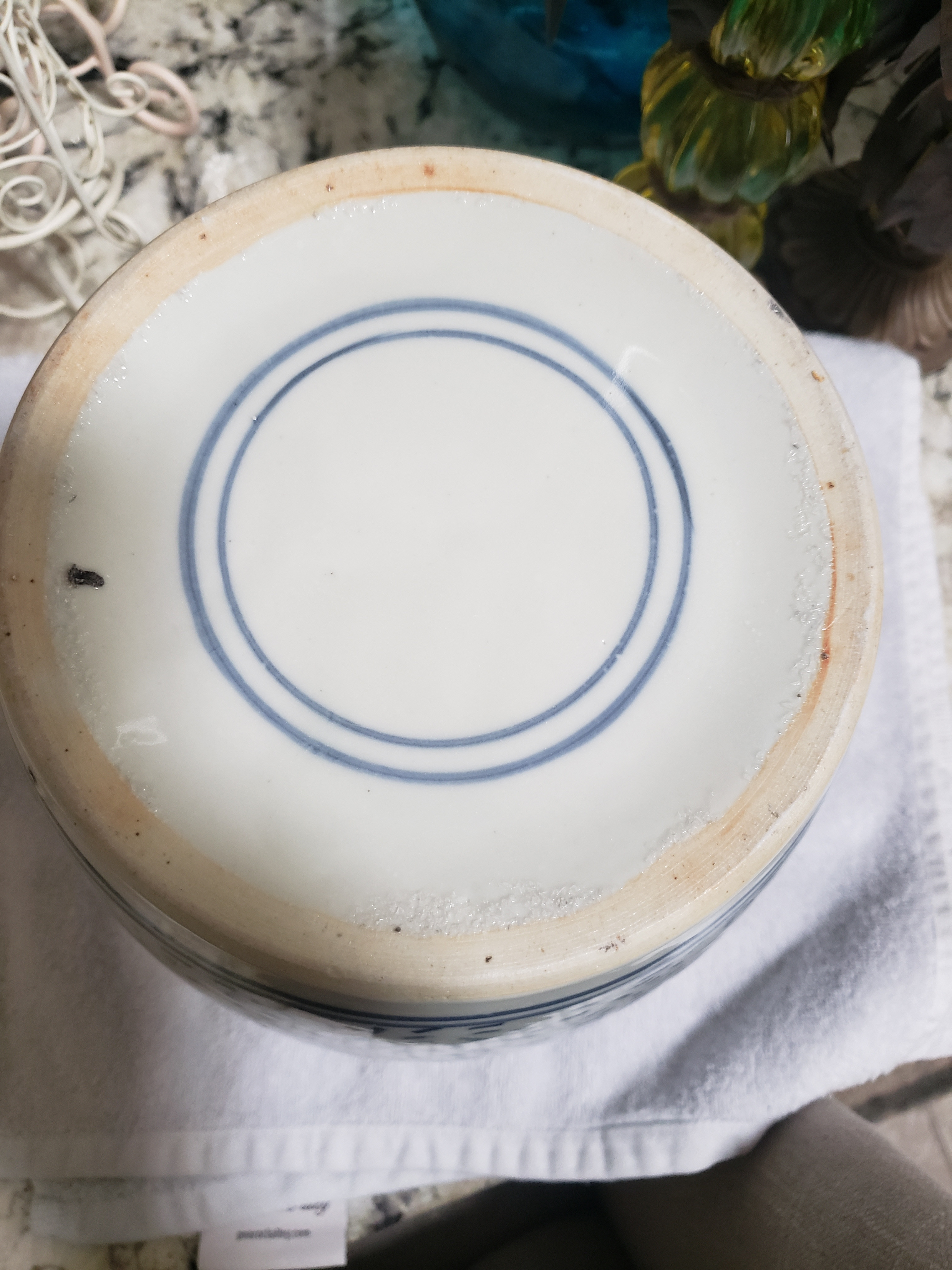 Given the double ring mark, this jar is most likely a mid-20th-century decorative piece, making its estimated market value $75 - $200 USD depending on demand and condition.
