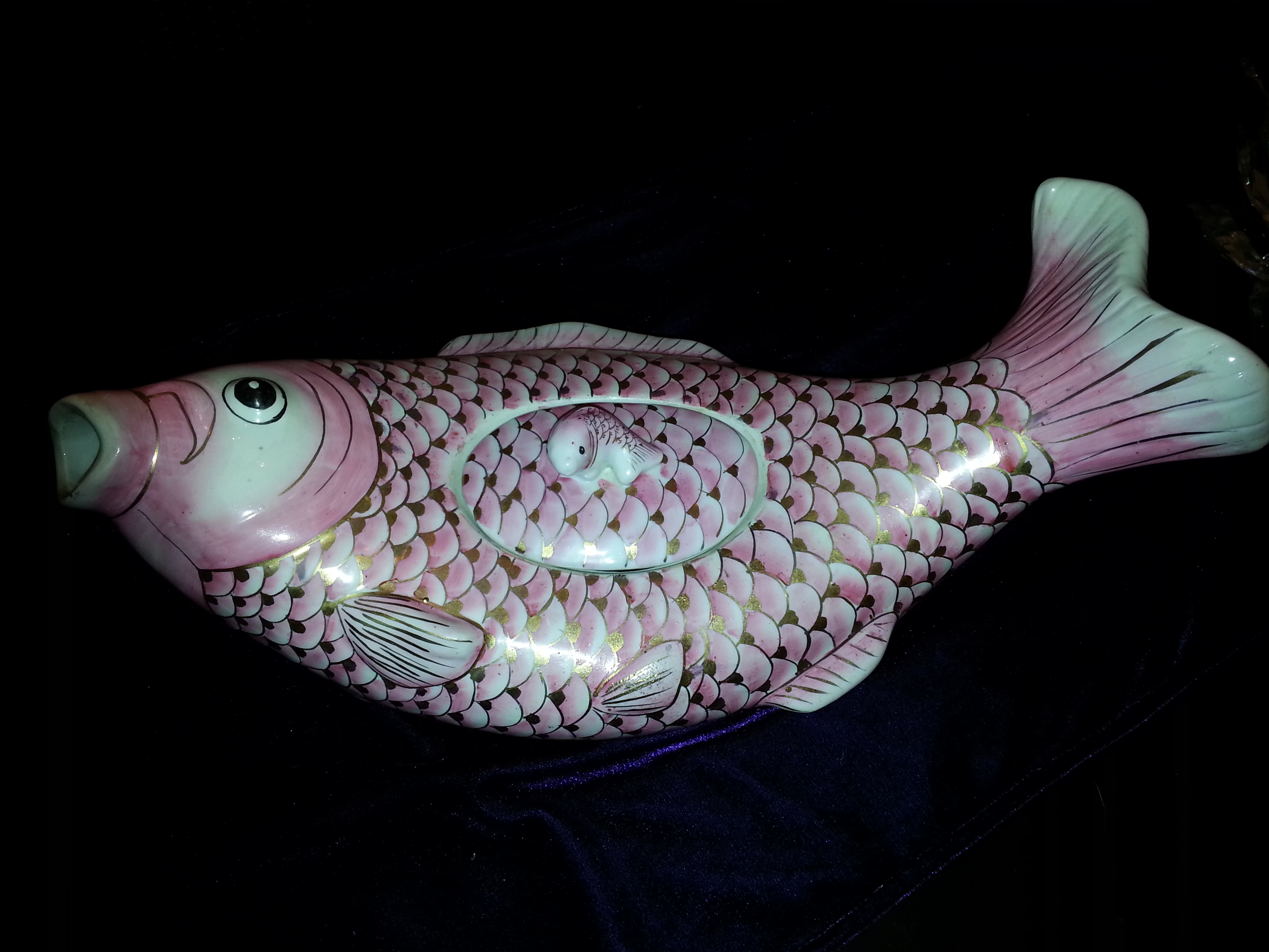 Hand painted in pink and a shiny gold( maybe real gold) Paint.
