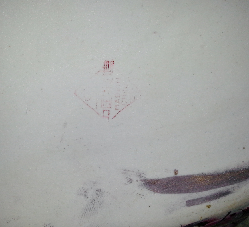 Marking on botton, diamond shaped stamp with Made in China in english, and chinese characters.