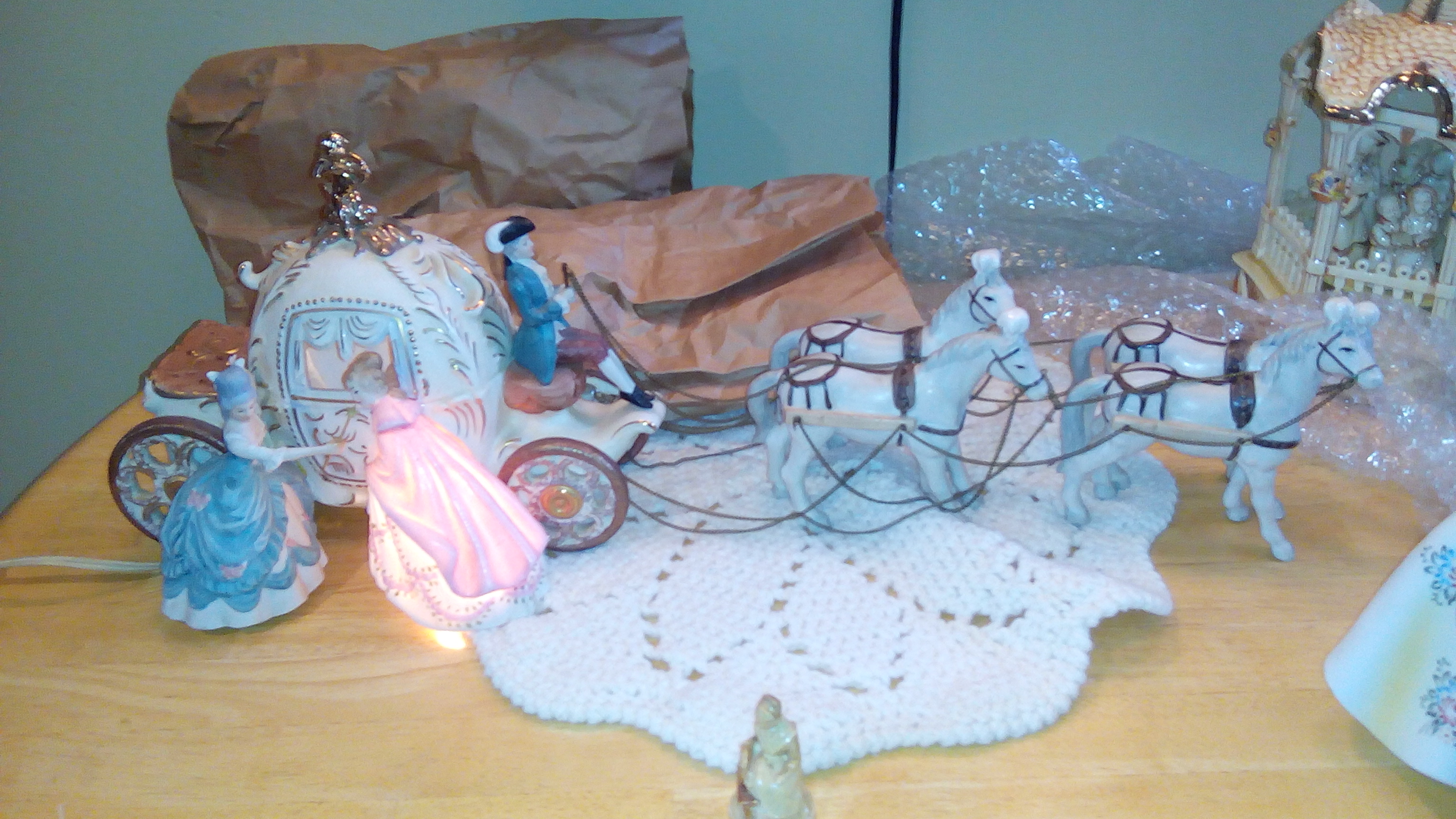 Almost perfect shape Cinderella carriage. The carriage is round instead of square. We have the original paper as well.