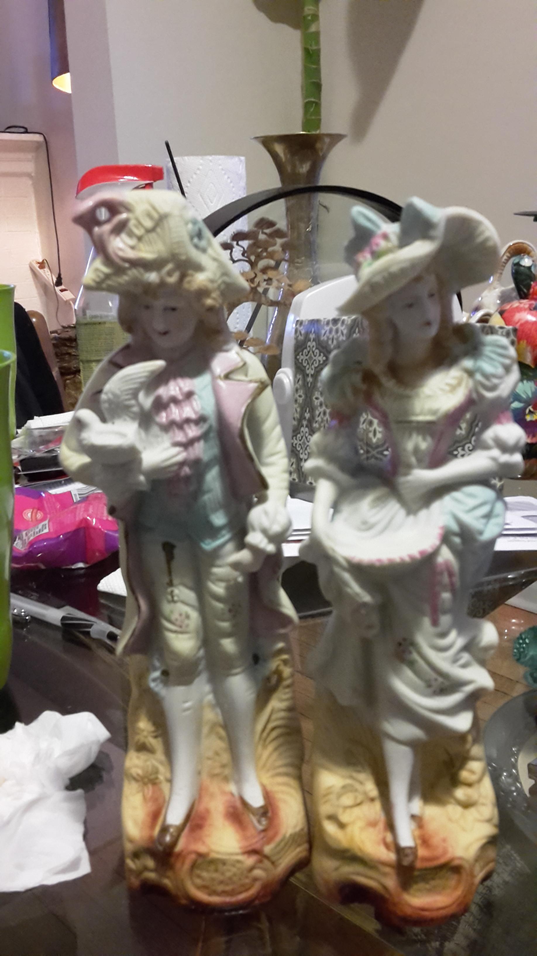 Two porcelain statues one male one female from Victoria age I think, Japan is inscribed on bottom of statues.